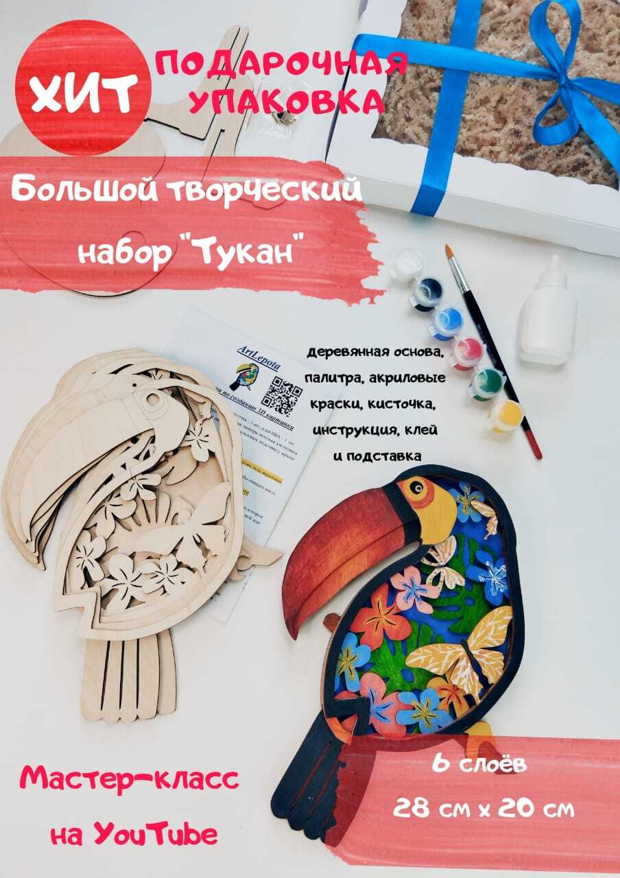 Набор для росписи "Тукан" / 3D раскраска / Подарок взрослому или ребенку