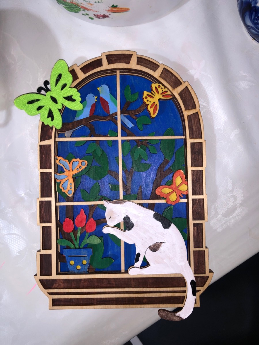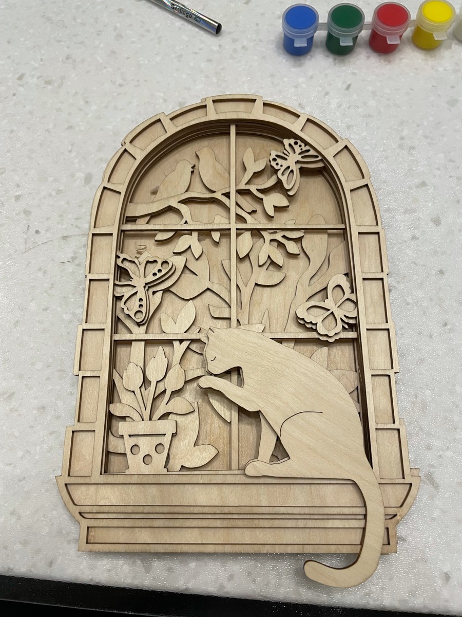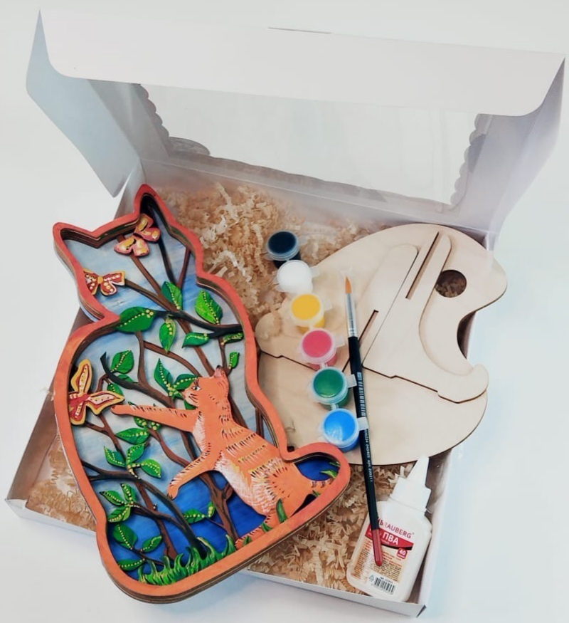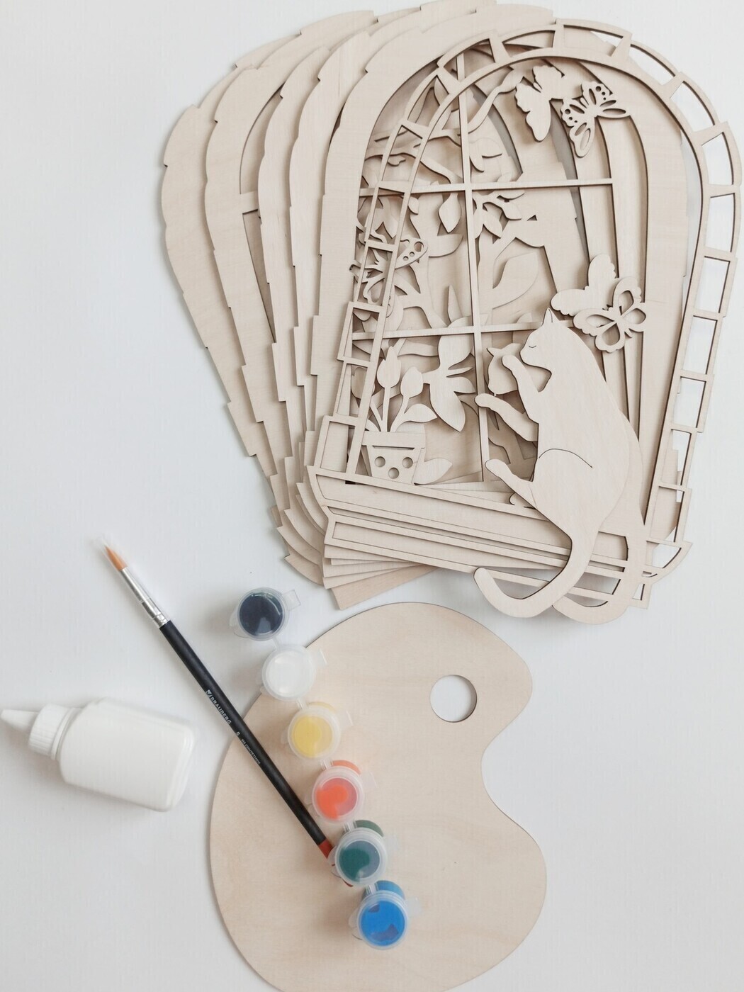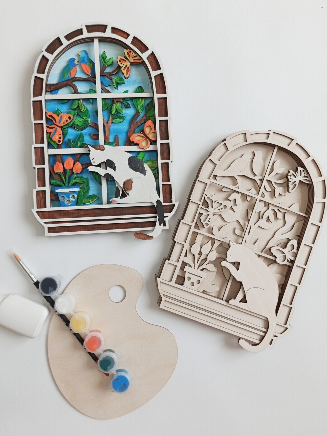 Творческий Набор для росписи / 3D раскраска из фанеры / Artlepota Кошка на окошке