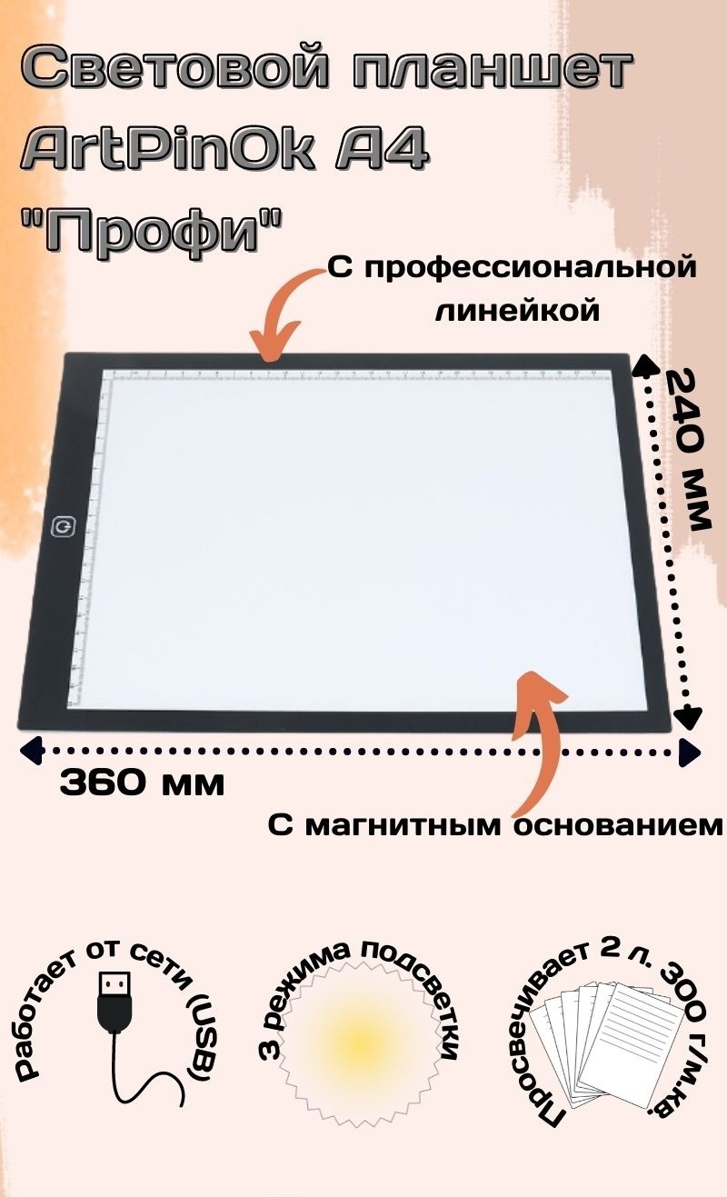 Световой планшет ArtPinOk А4 "Профи" М18 на магнитной панели