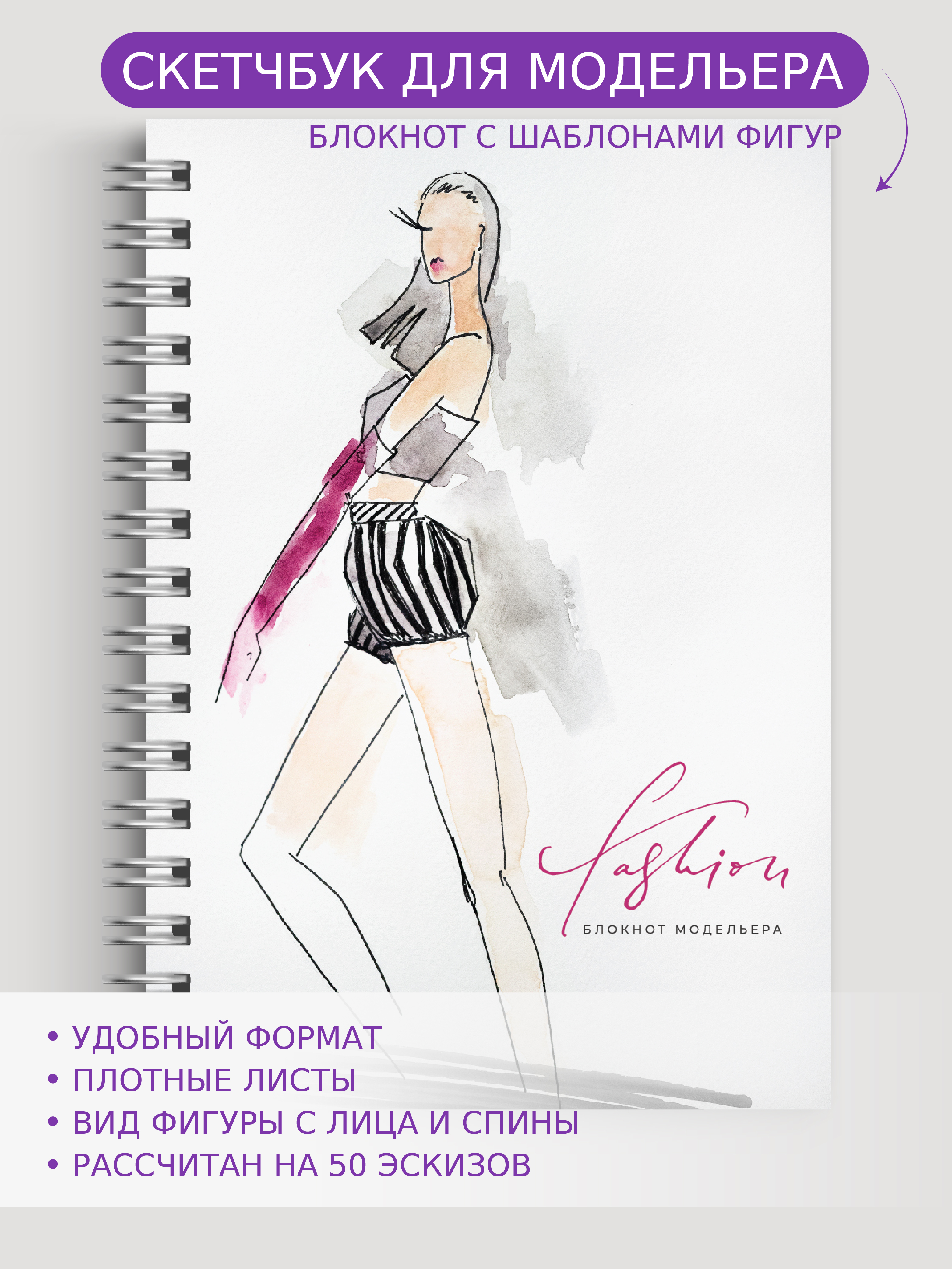 Скетчбук с шаблонами фигур, плотная бумага . Блокнот модельера. Творческий блокнот.