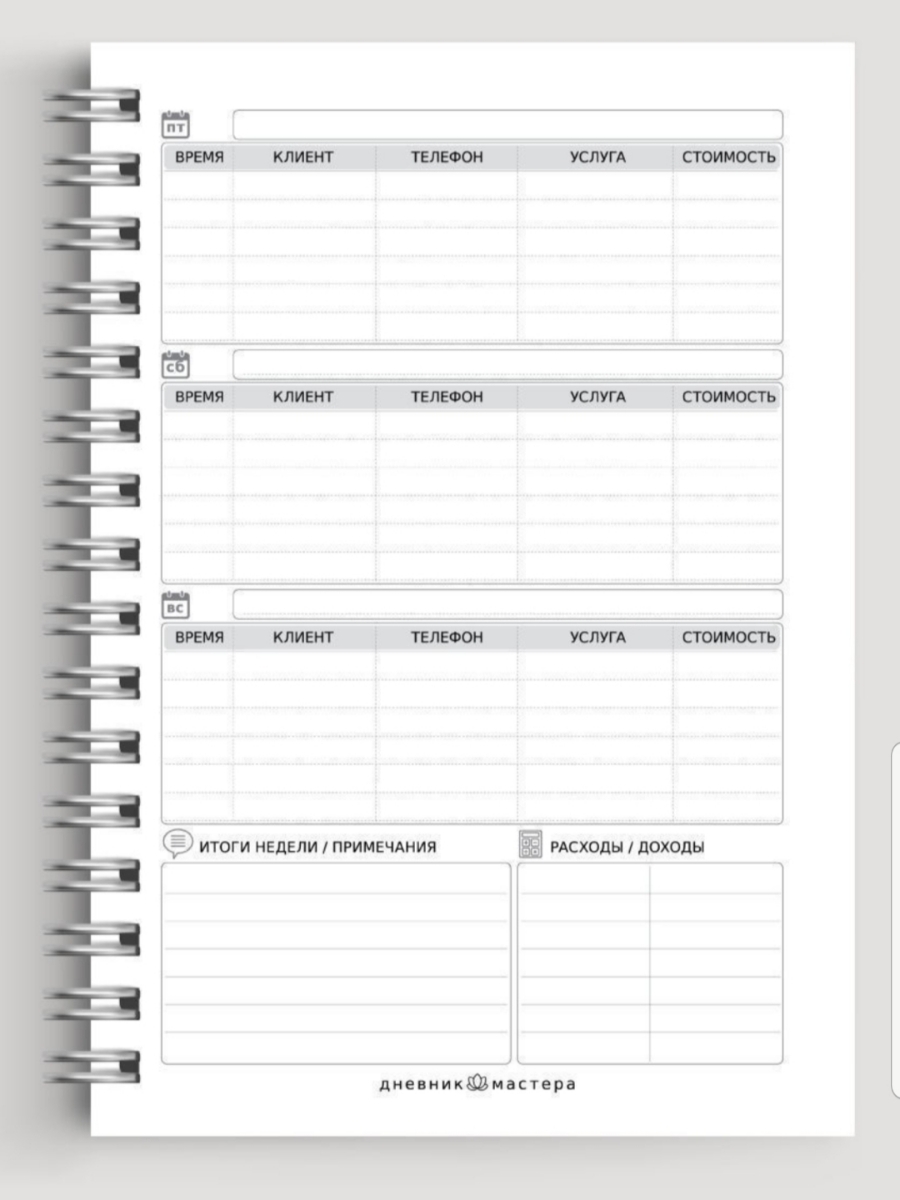 Блокнот мастера на 1 год, закладка в комплекте. Планер мастера. Ежедневник мастера.