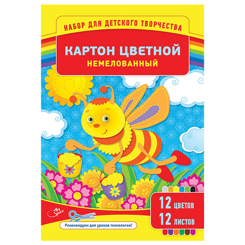 Цветной картон немелованный, в папке, в ассортименте ArtSpace, A4, 12 л., 12 цв.