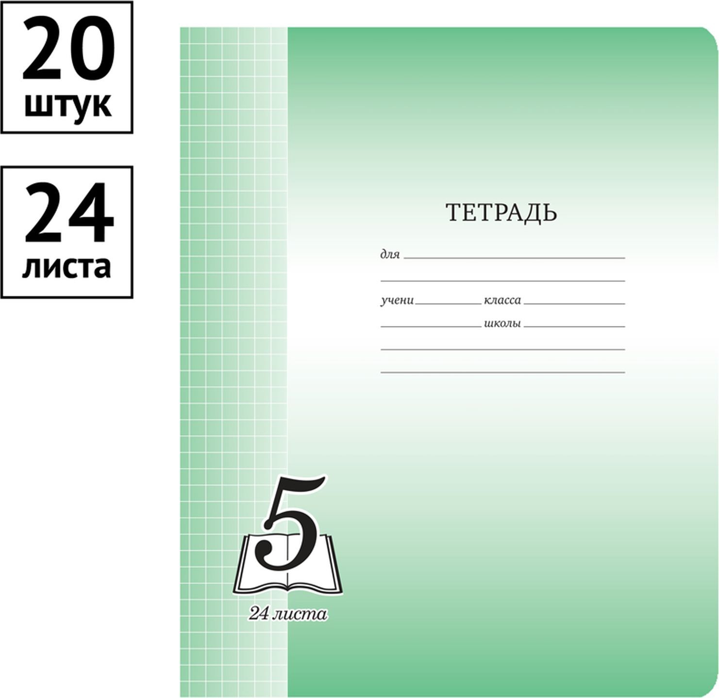 Тетрадь Спейс "Пятерка", 24 листов, в клетку, 20 шт, зеленый