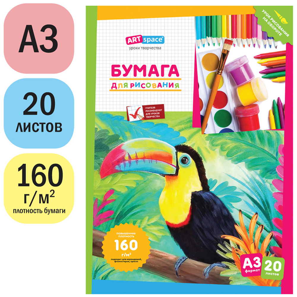Папка для рисования ArtSpace, А3, 160г/м2, 20 листов, 15 шт