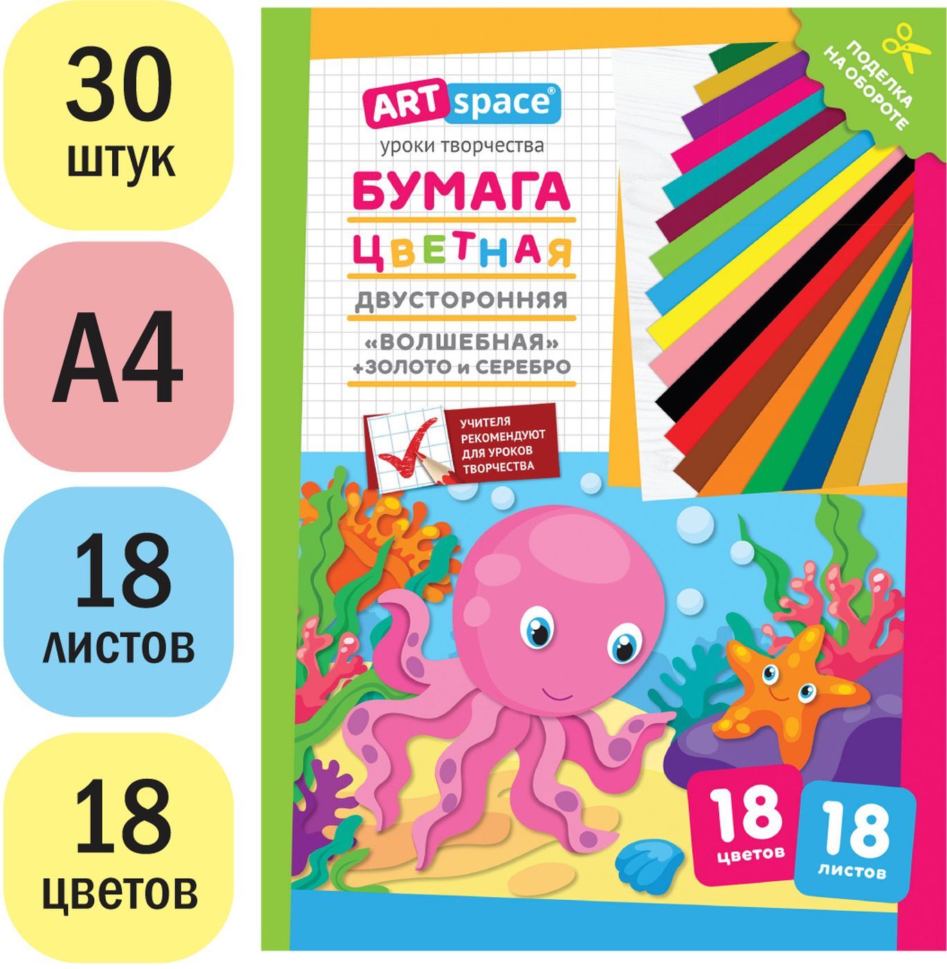 Бумага цветная ArtSpace Волшебная Осьминог, двусторонняя, газетная, 291734, 18 листов х 30 шт