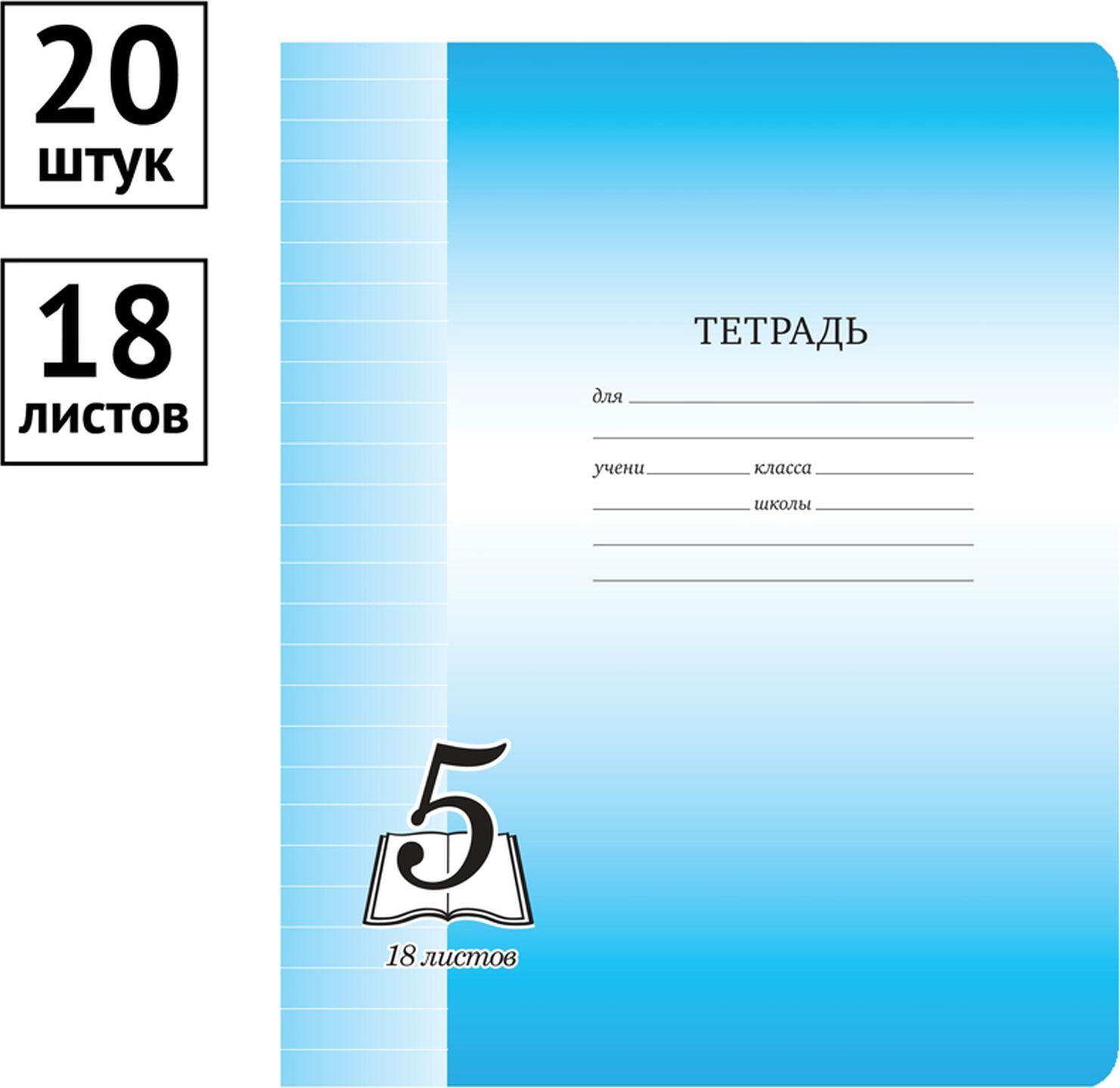 Тетрадь Спейс "Пятерка", 18 листов, в линейку, 20 шт, голубой