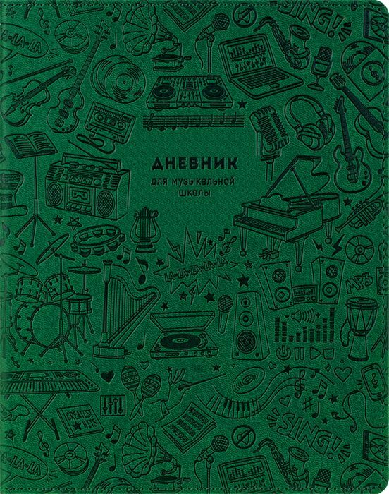 Дневник для музыкальной школы ArtSpace Music pattern. Green, лайт, искуственная кожа, ляссе, 48 л
