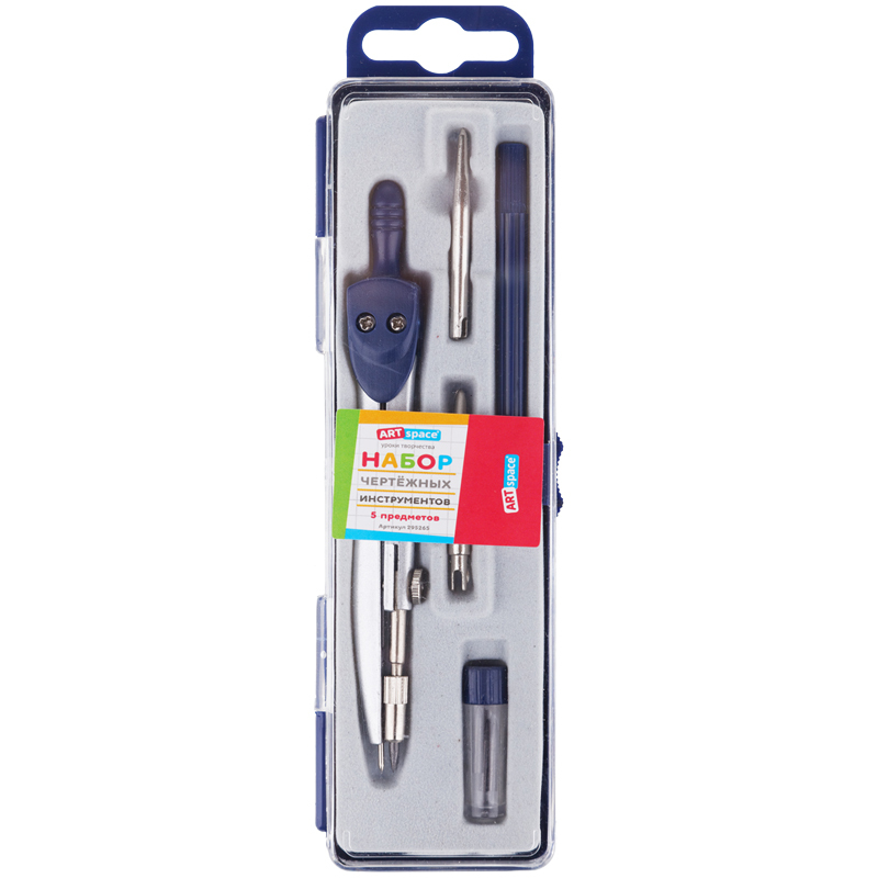 Готовальня ArtSpace, 5 предметов, циркуль 115 мм, пластиковый футляр, синий