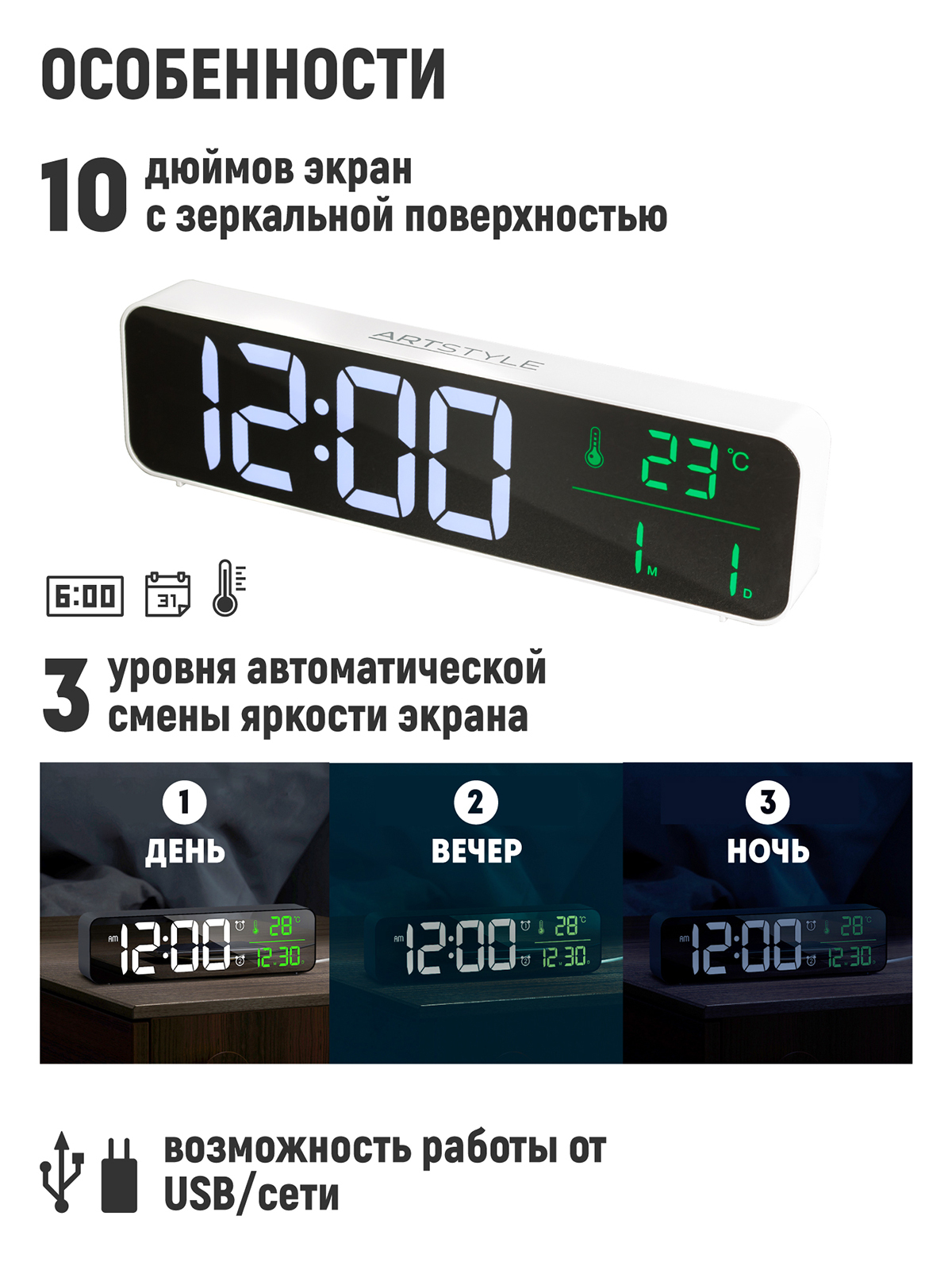 Настольные часы Электронные ARTSTYLE 1 шт