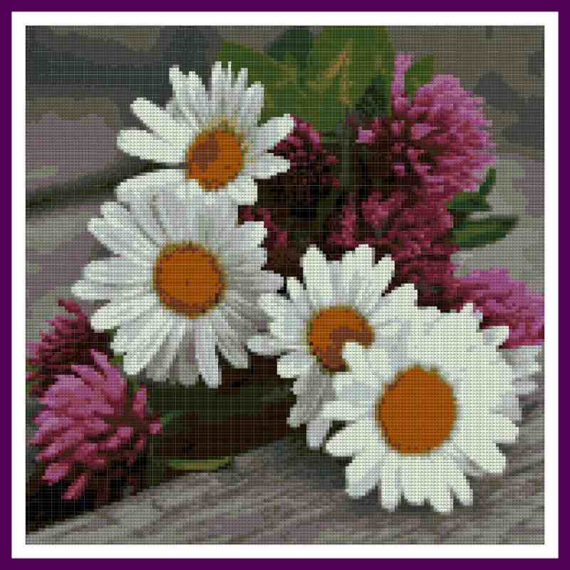 Алмазная мозаика ArtXobby "Ромашки и клевер", 40х40, квадратные стразы, полная выкладка