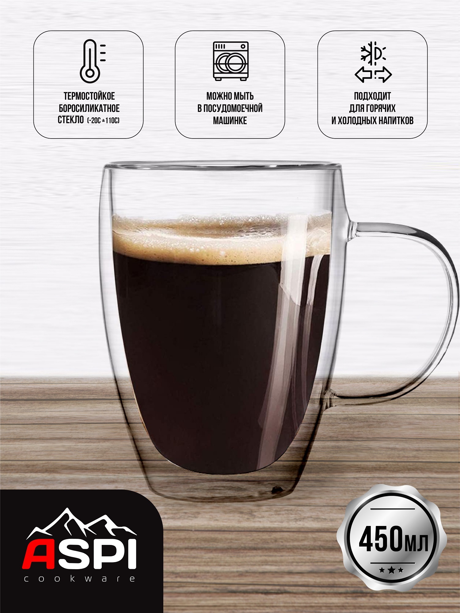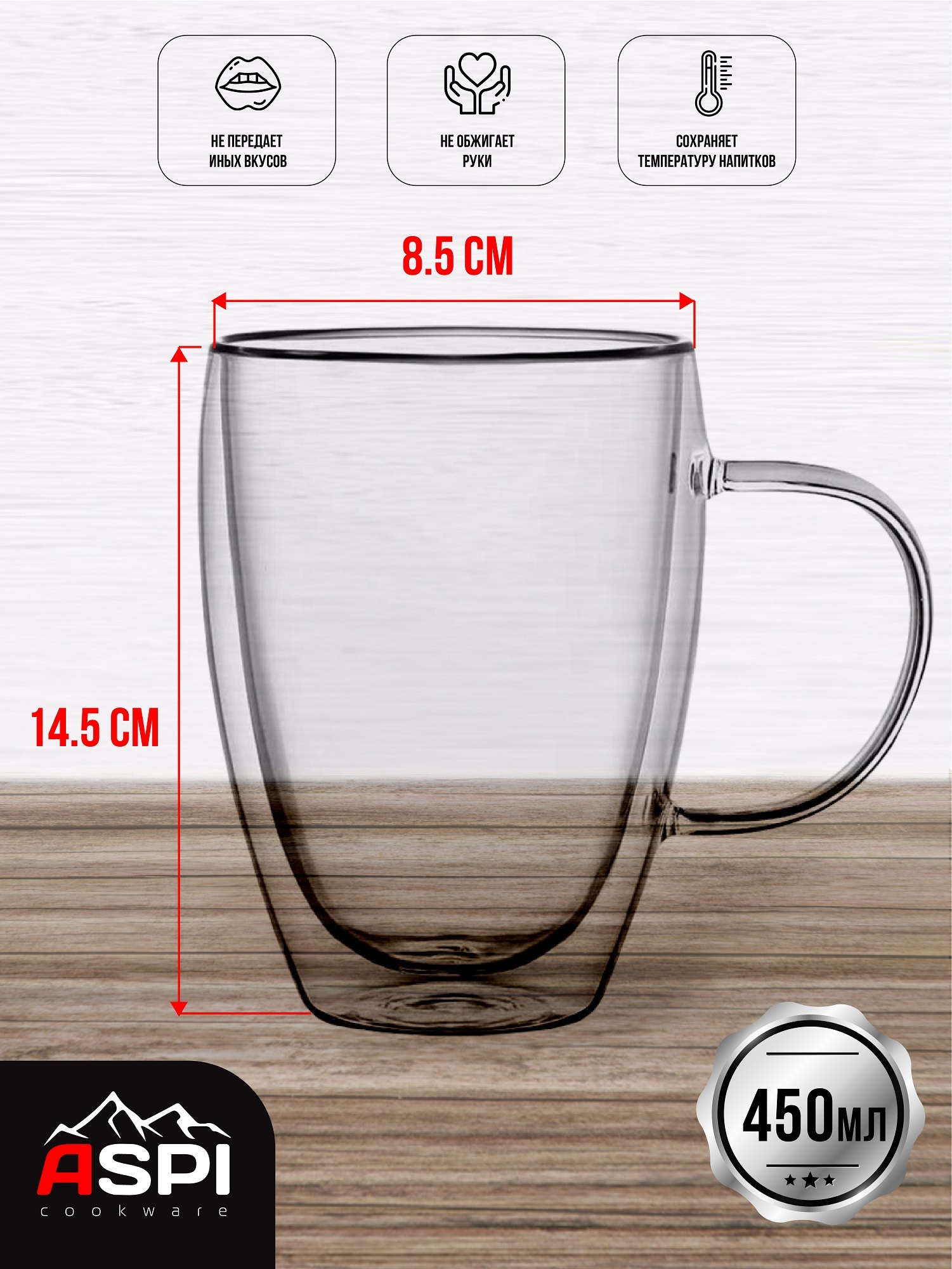 Чашка чайная, Чашка кофейная Aspi cookware, 450 мл