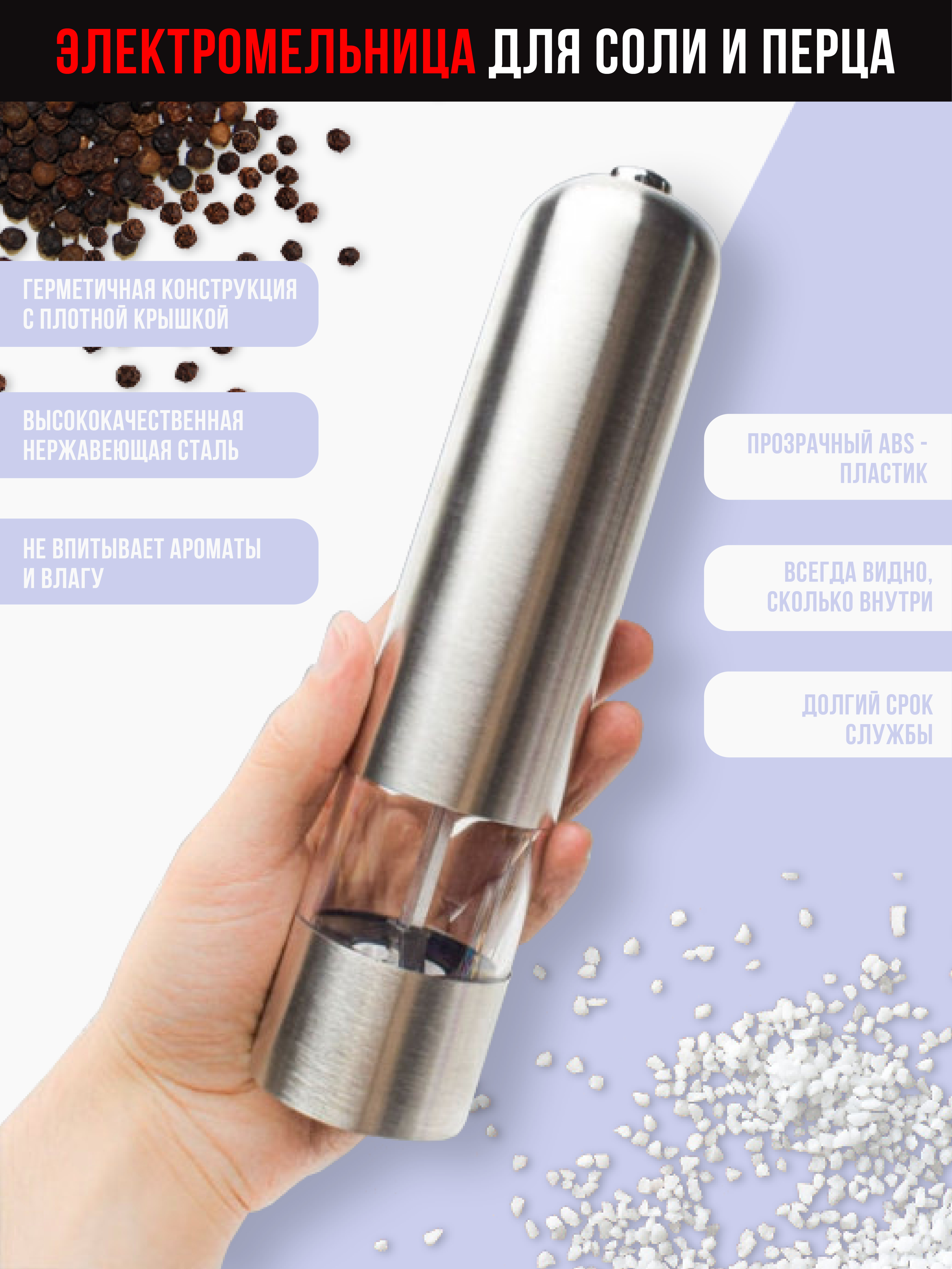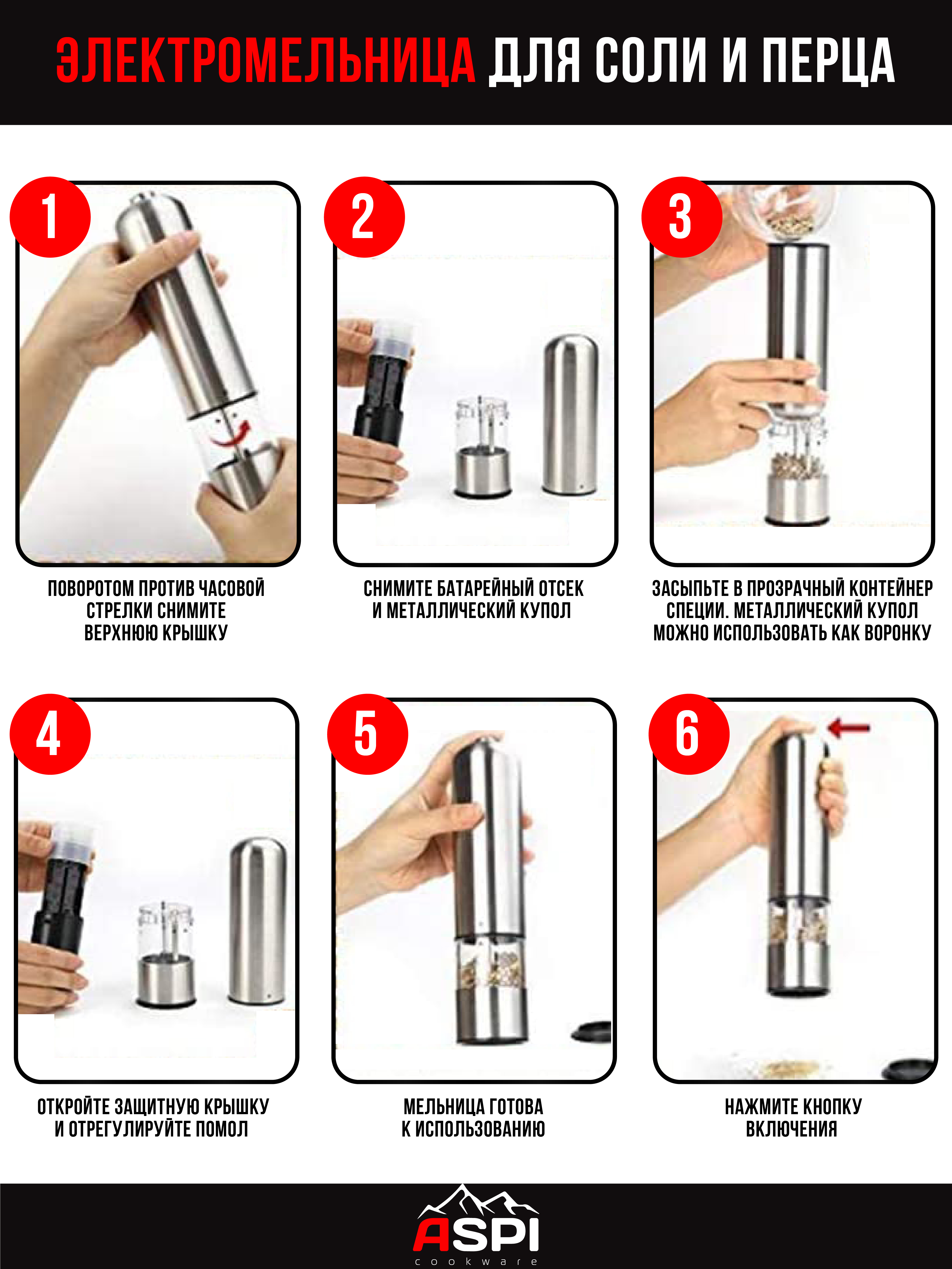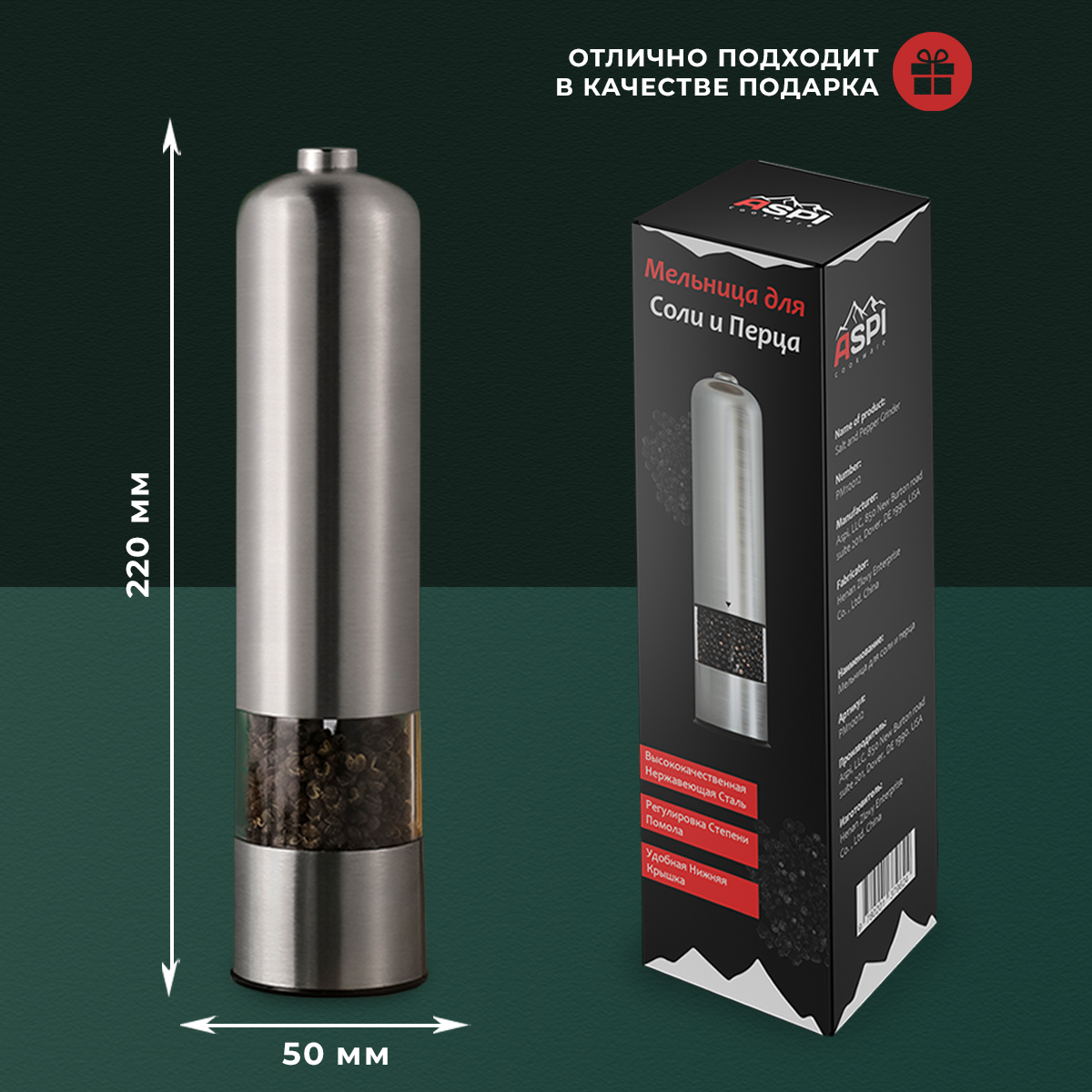 Электромельница для специй, Мельница для специй Aspi cookware, высота 22 см