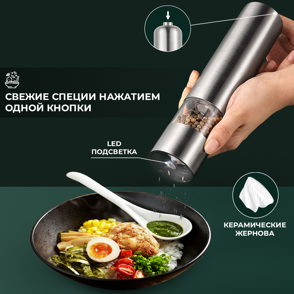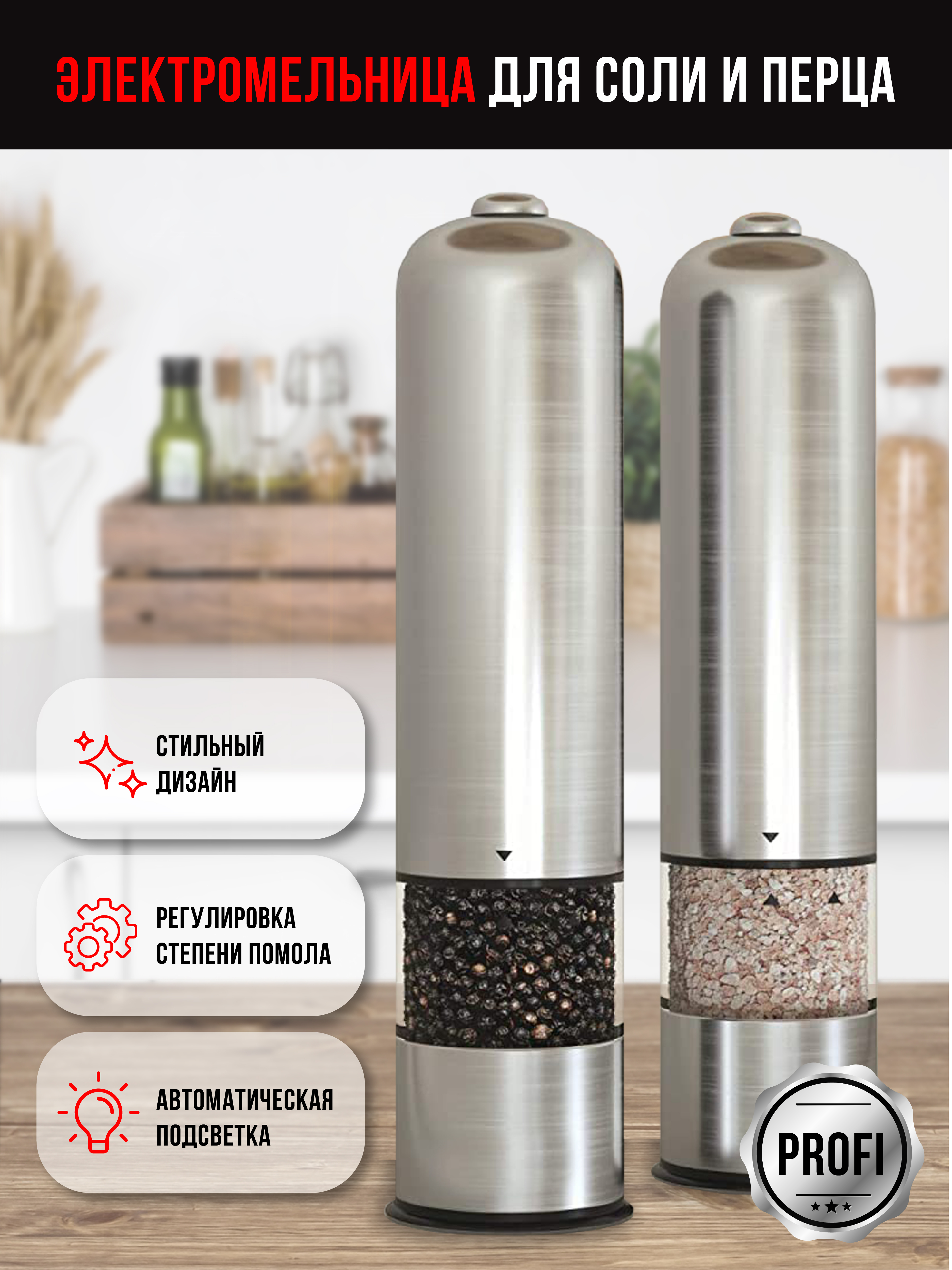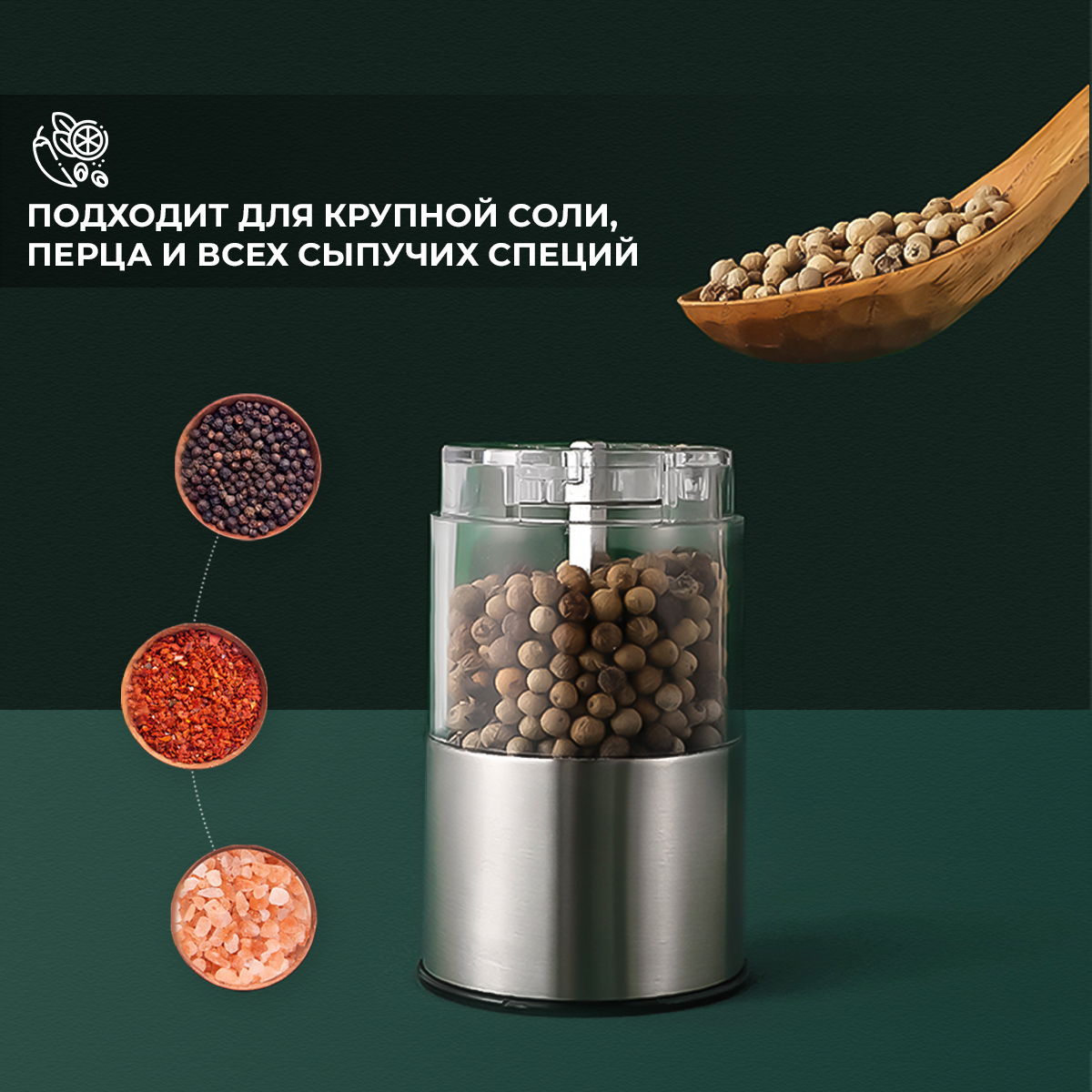 Электромельница для специй, Мельница для специй Aspi cookware, высота 22 см