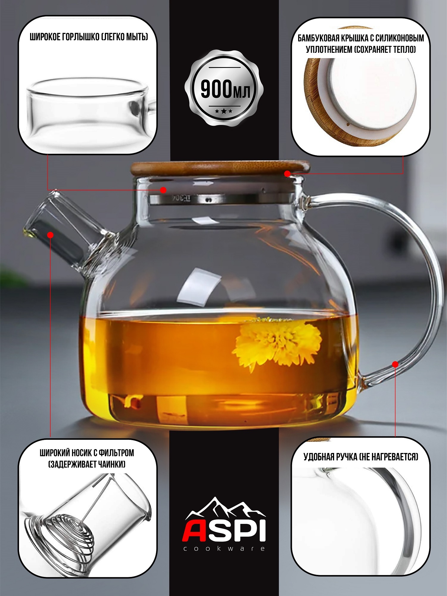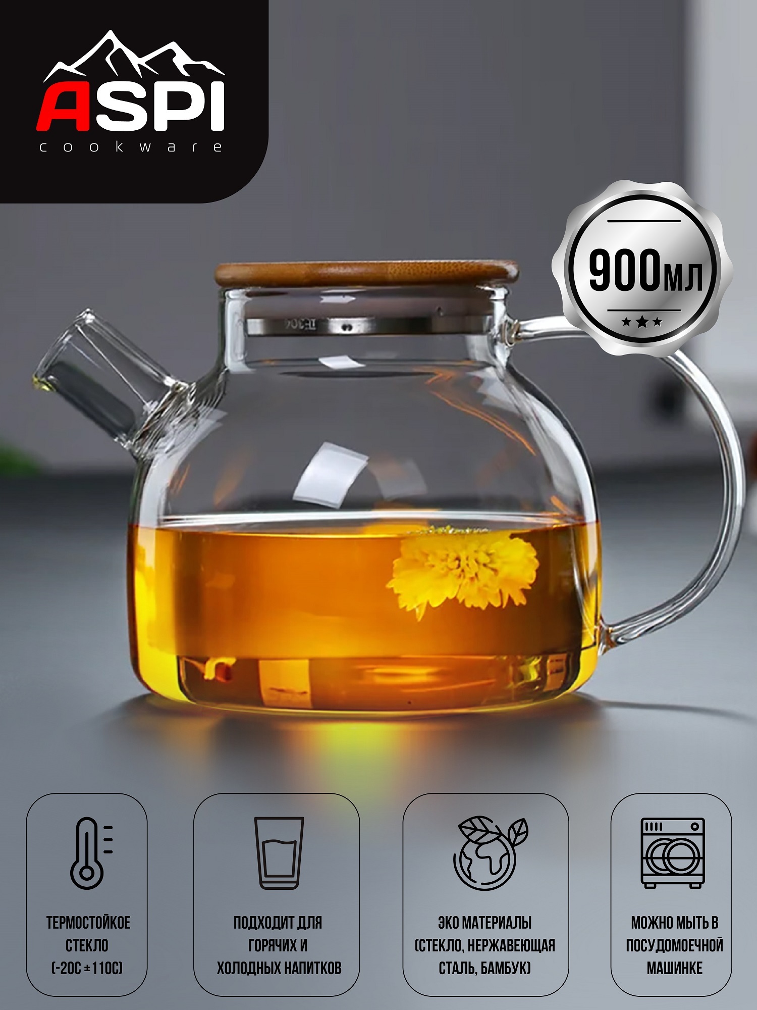 Чайник заварочный Aspi cookware, 900 мл