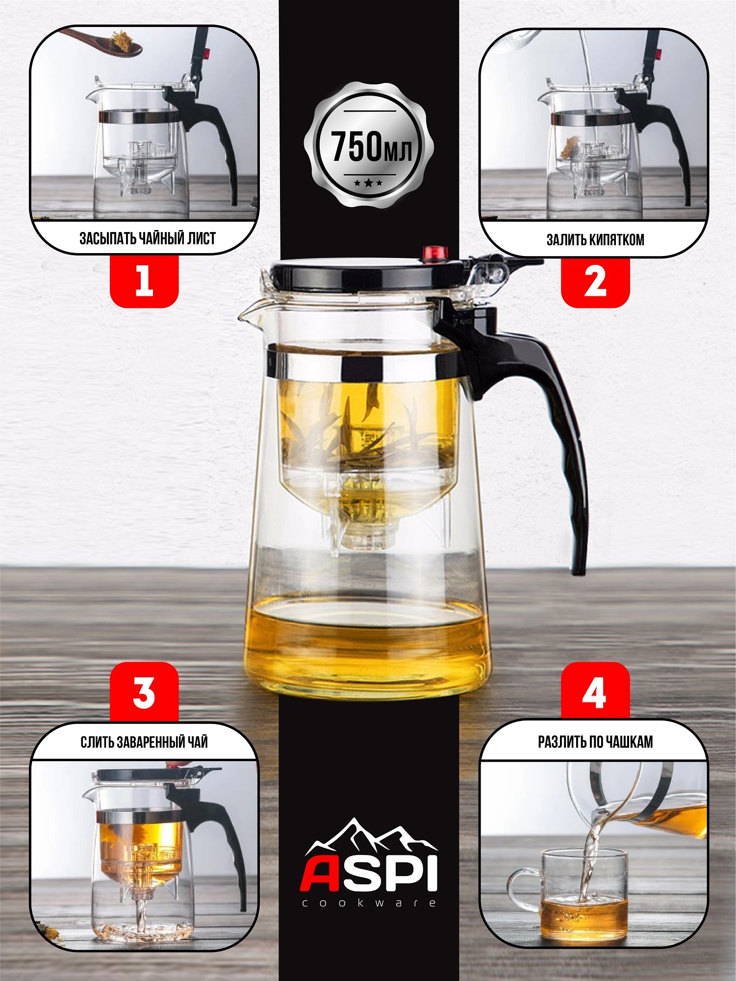 Чайник Гунфу, Чайник заварочный Aspi cookware, 750 мл