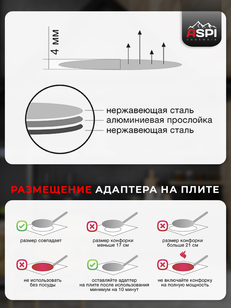 Адаптер для индукционной панели Aspi cookware, 20 см