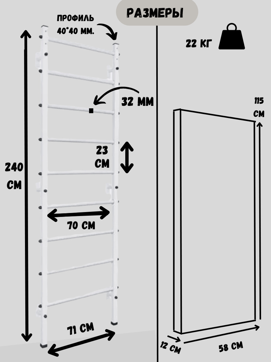 Шведская стенка Sportlim Враспор с турником Рукоход Asta67 Белая