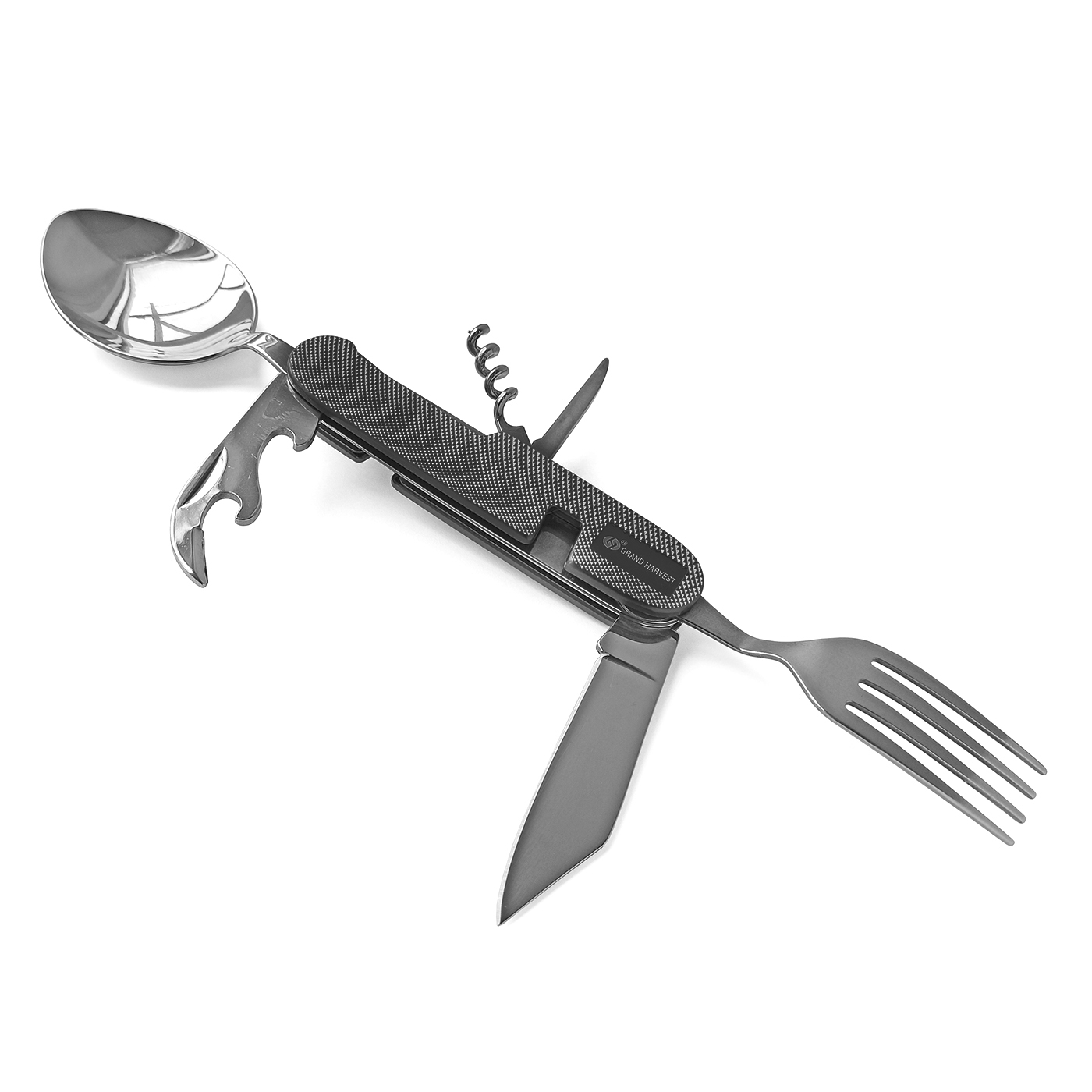 Мультитул походный Grand Harvest 6в1 столовых приборов серый