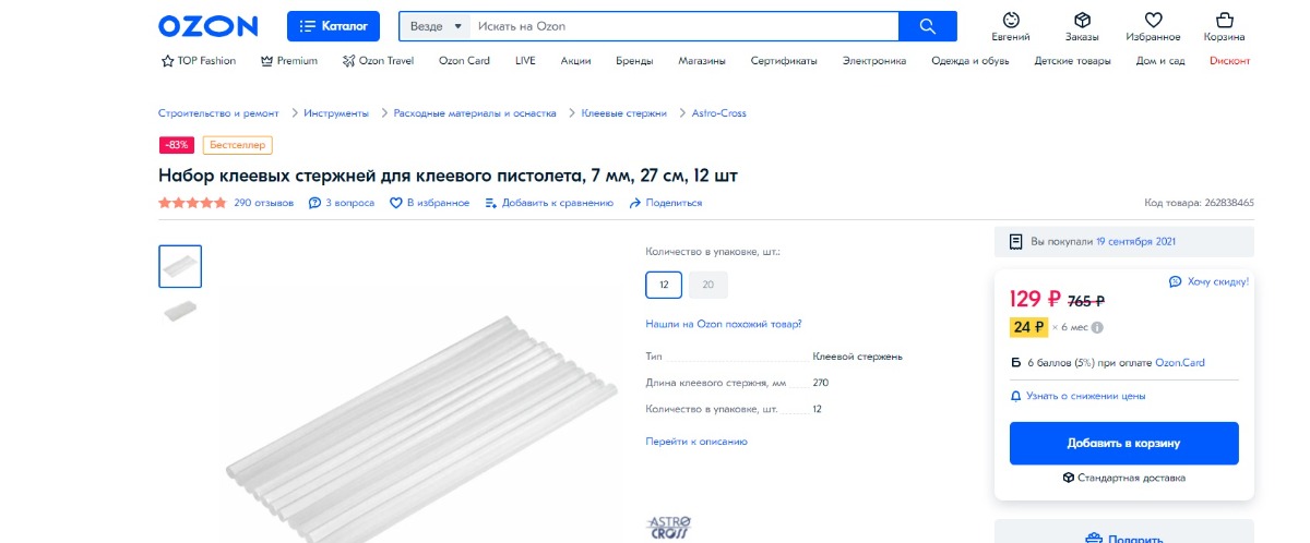 Набор клеевых стержней для клеевого пистолета, 7 мм, 27 см, 12 шт