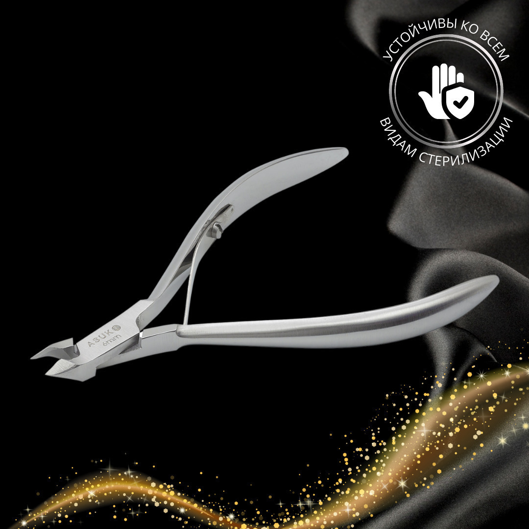 ASUKO Профессиональные маникюрные кусачки для кутикулы кожи и заусенцев. С ручной алмазной заточкой. Длина лезвия 6 мм.