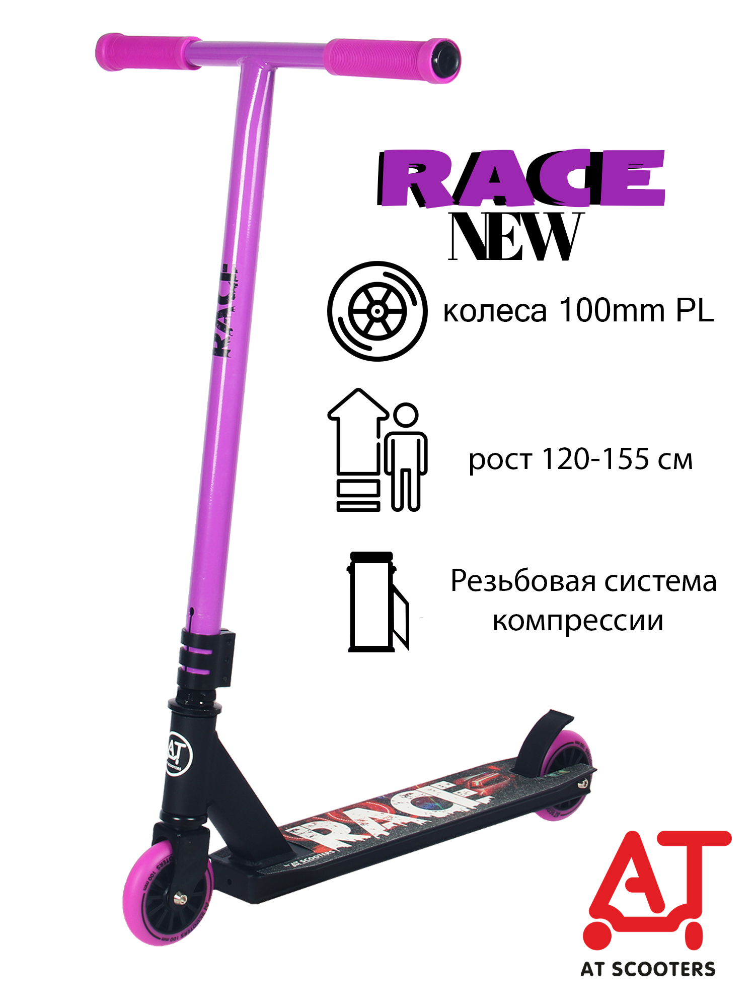 Самокат Трюковой AT SCOOTERS RACE-NEW, 100 мм