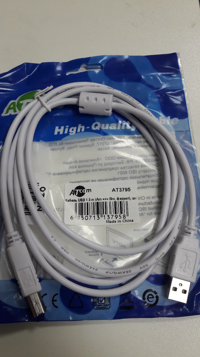 Кабель Atcom USB 1.8 м (Am - Bm) для принтера, сканера , МФУ