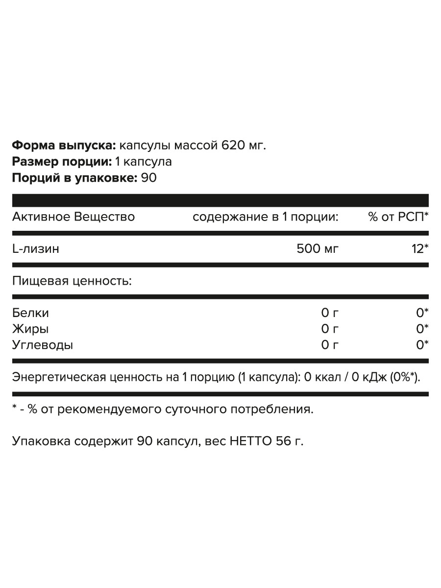 LYSINE, aTech nutrition, 90 капсул