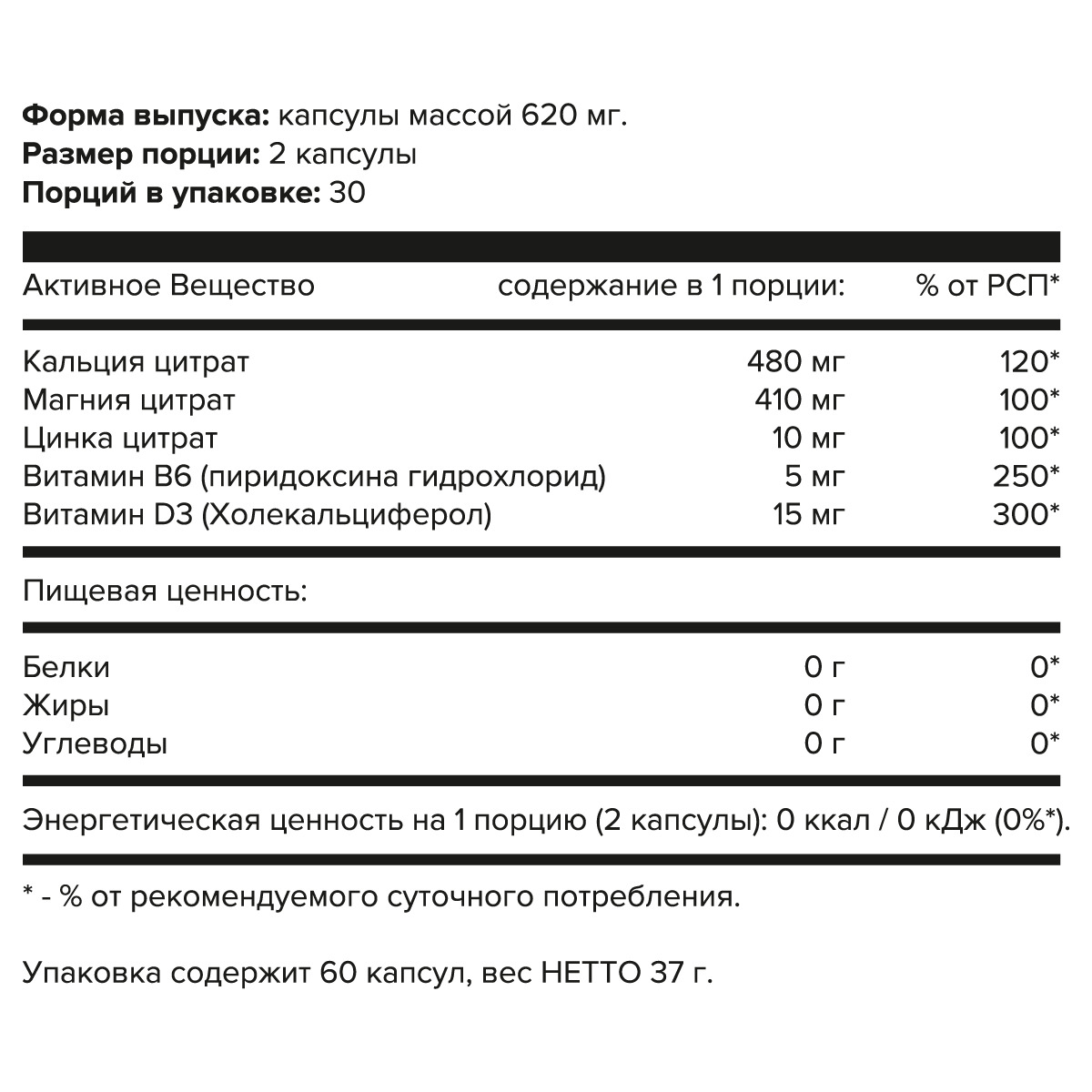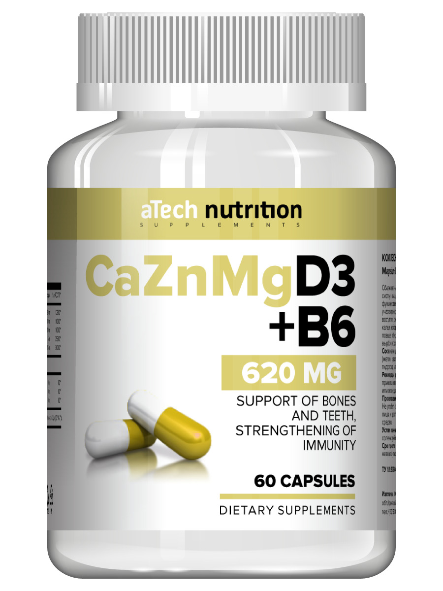 Calcium Zinc Magnesium+D3+B6, aTech Nutrition, 60 капсул
