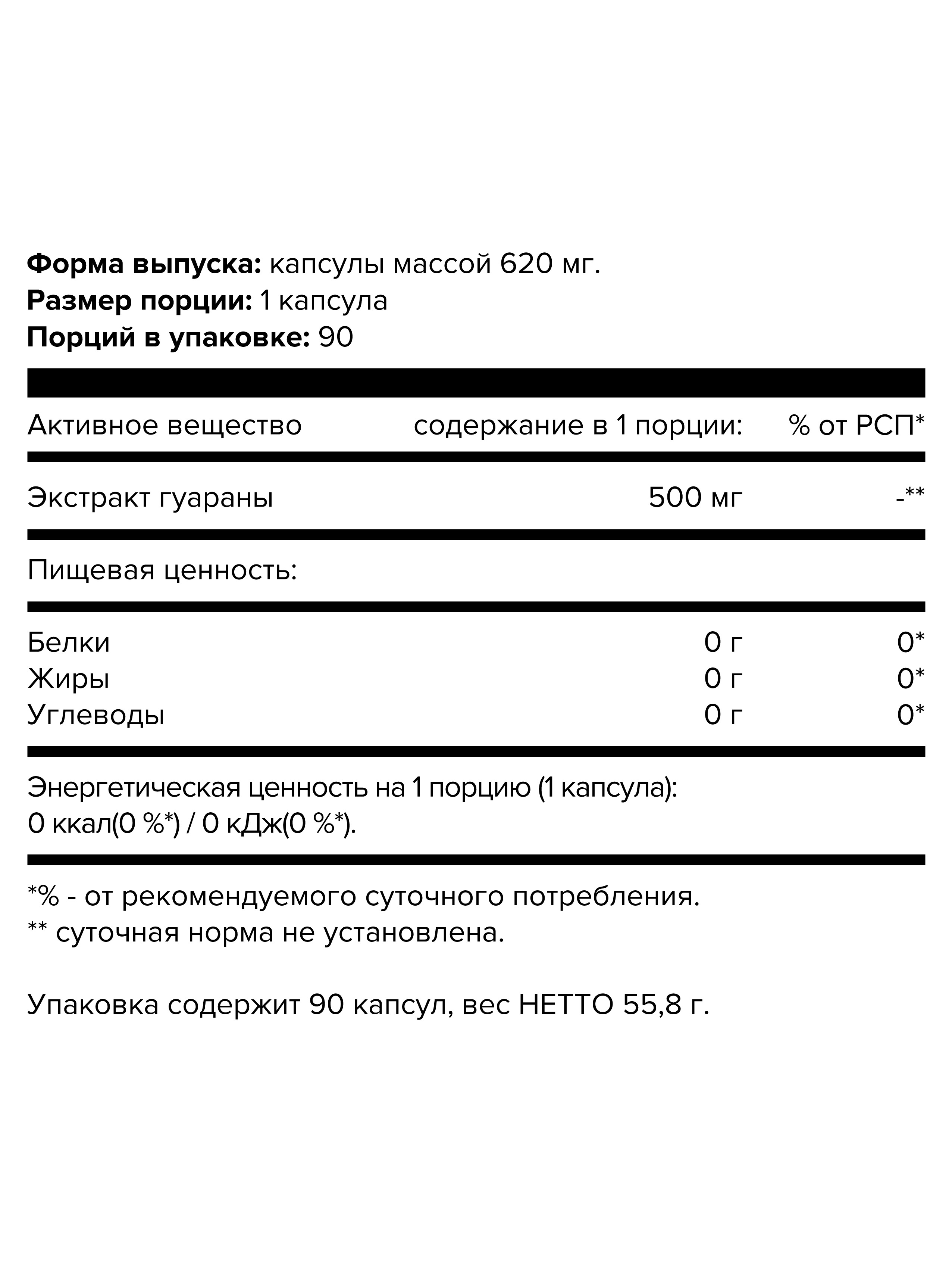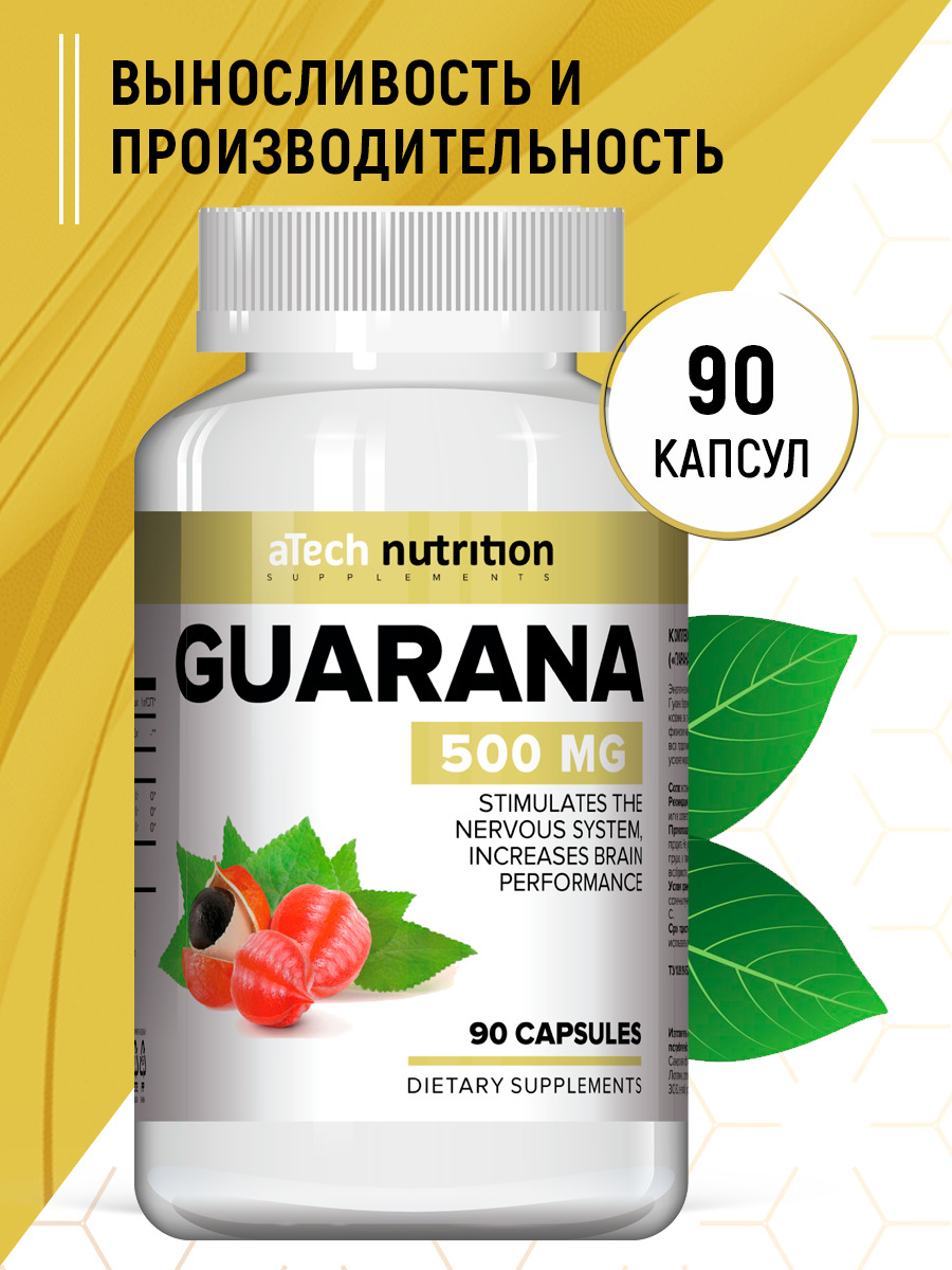 Экстракт гуараны aTech nutrition, природный энергетик в капсулах Guarana, 90 капсул