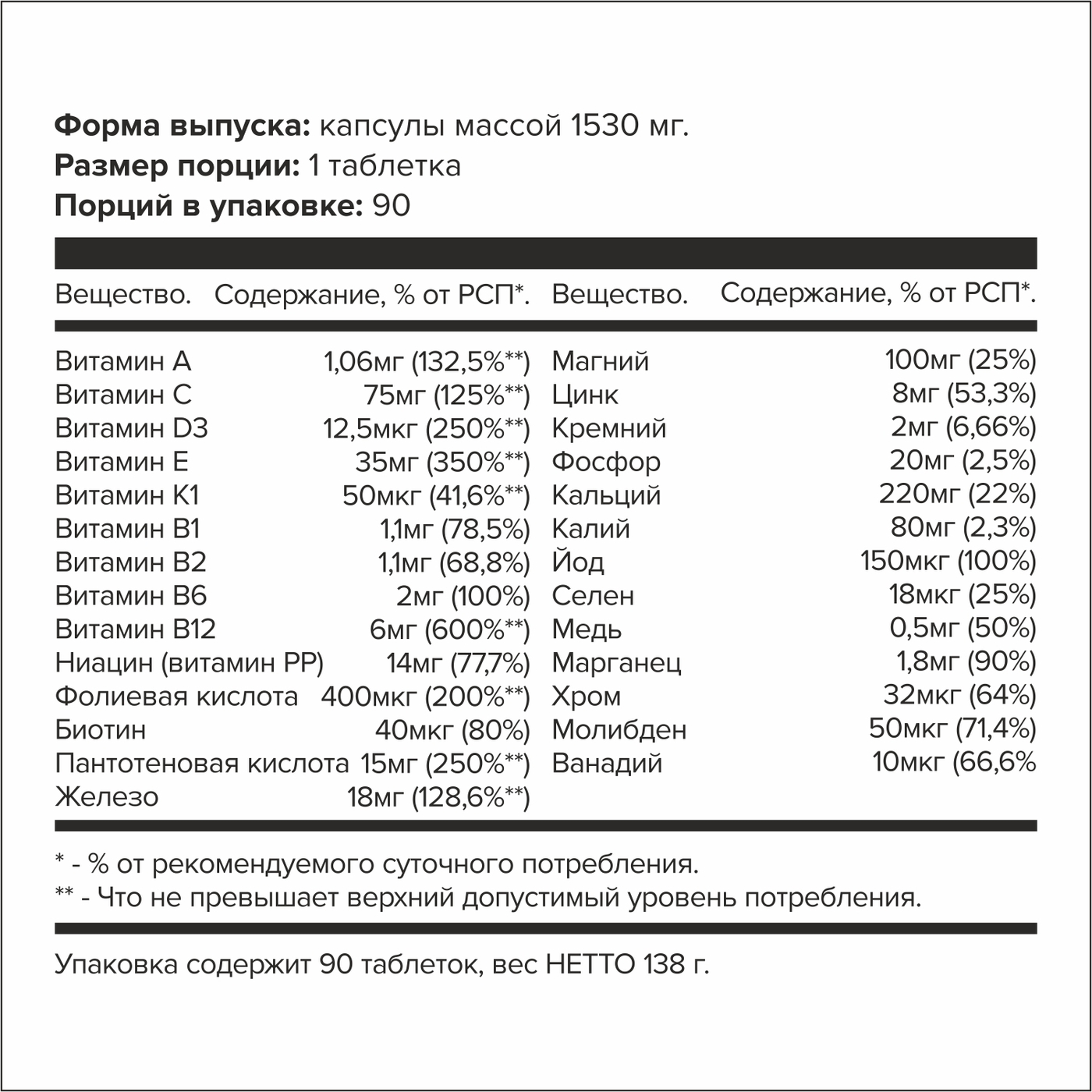 Витаминно-минеральный комплекс "MULTIVITAMINES", 90 каплет