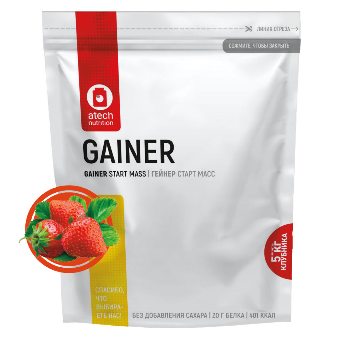 Гейнер aTech Nutrition "Gainer Start Mass", клубника, 5000 г