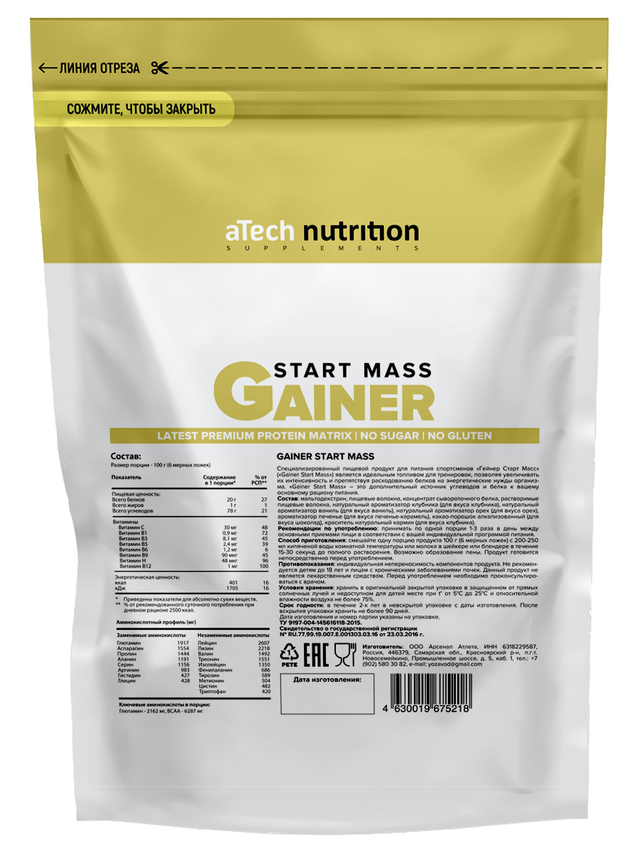 Гейнер aTech Nutrition Gainer Start Mass, ваниль, 3 кг