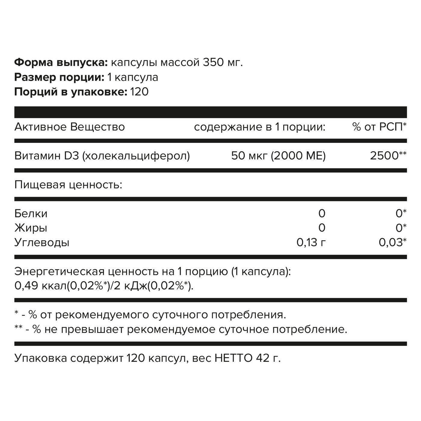 Витамин Д3 2000МЕ, aTech Nutrition, 120 капсул