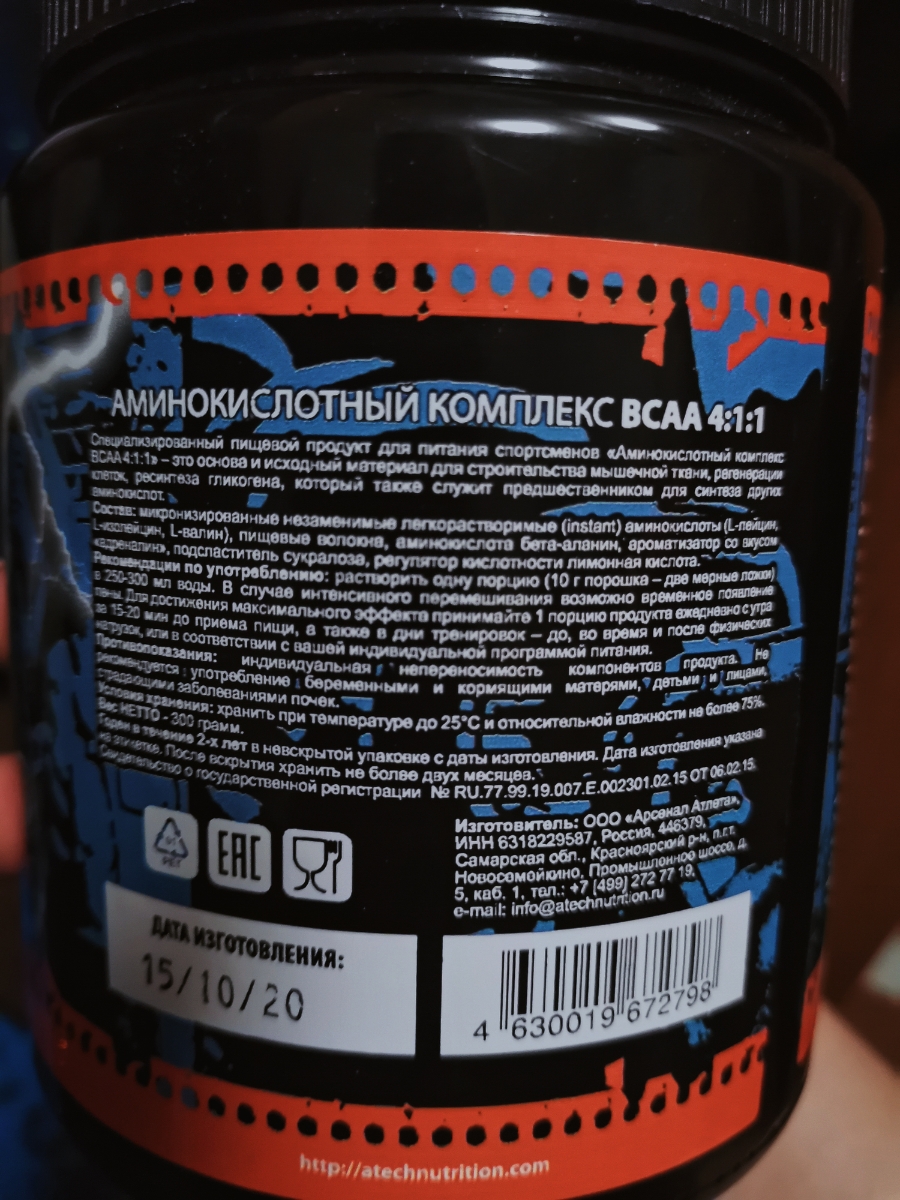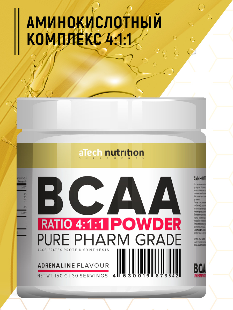 Комплекс аминокислот (BCAA) aTech Nutrition BCAA 4:1:1 Адреналин, 150 г