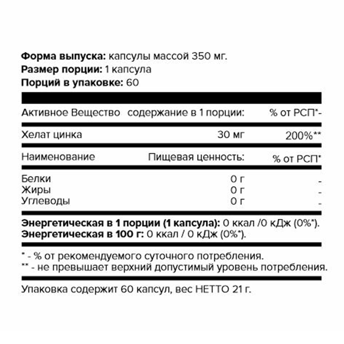 Хелат цинка CHELATED ZINC, aTech nutrition, 60 капсул
