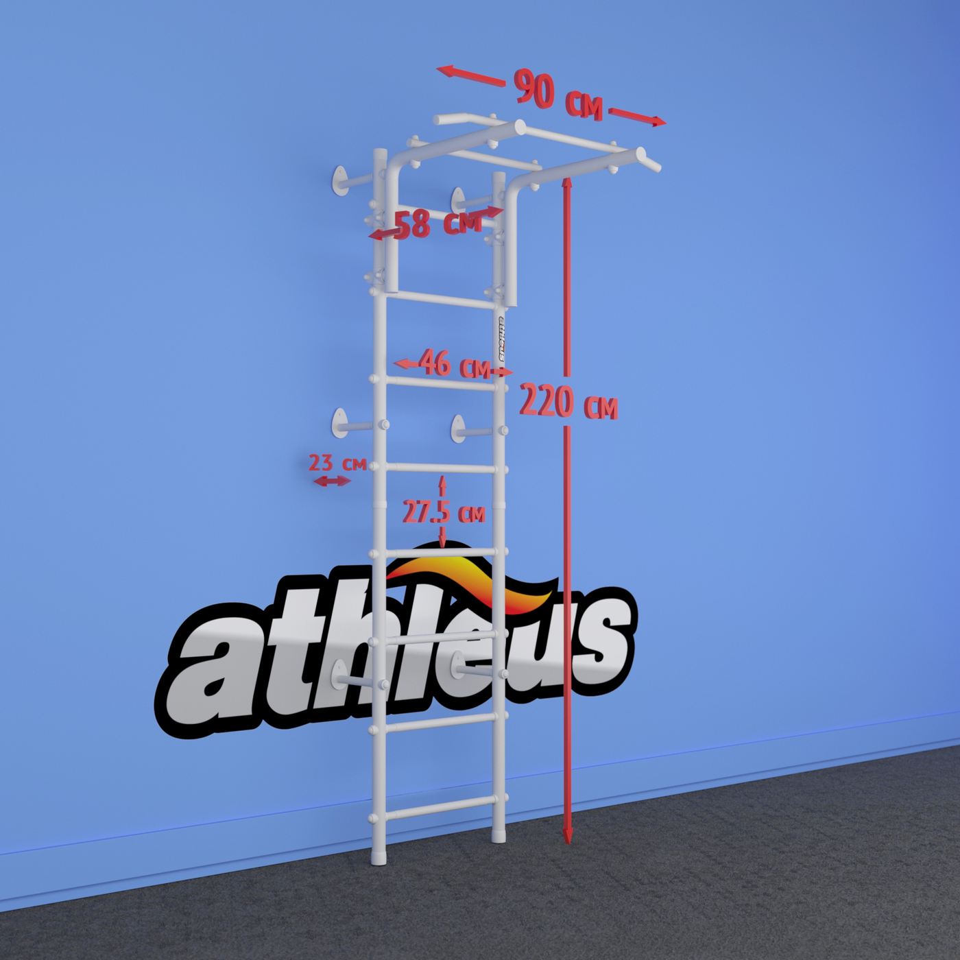 Шведская стенка Athleus Юный Атлет регулируемый турник, пристенный, pastel (белый)