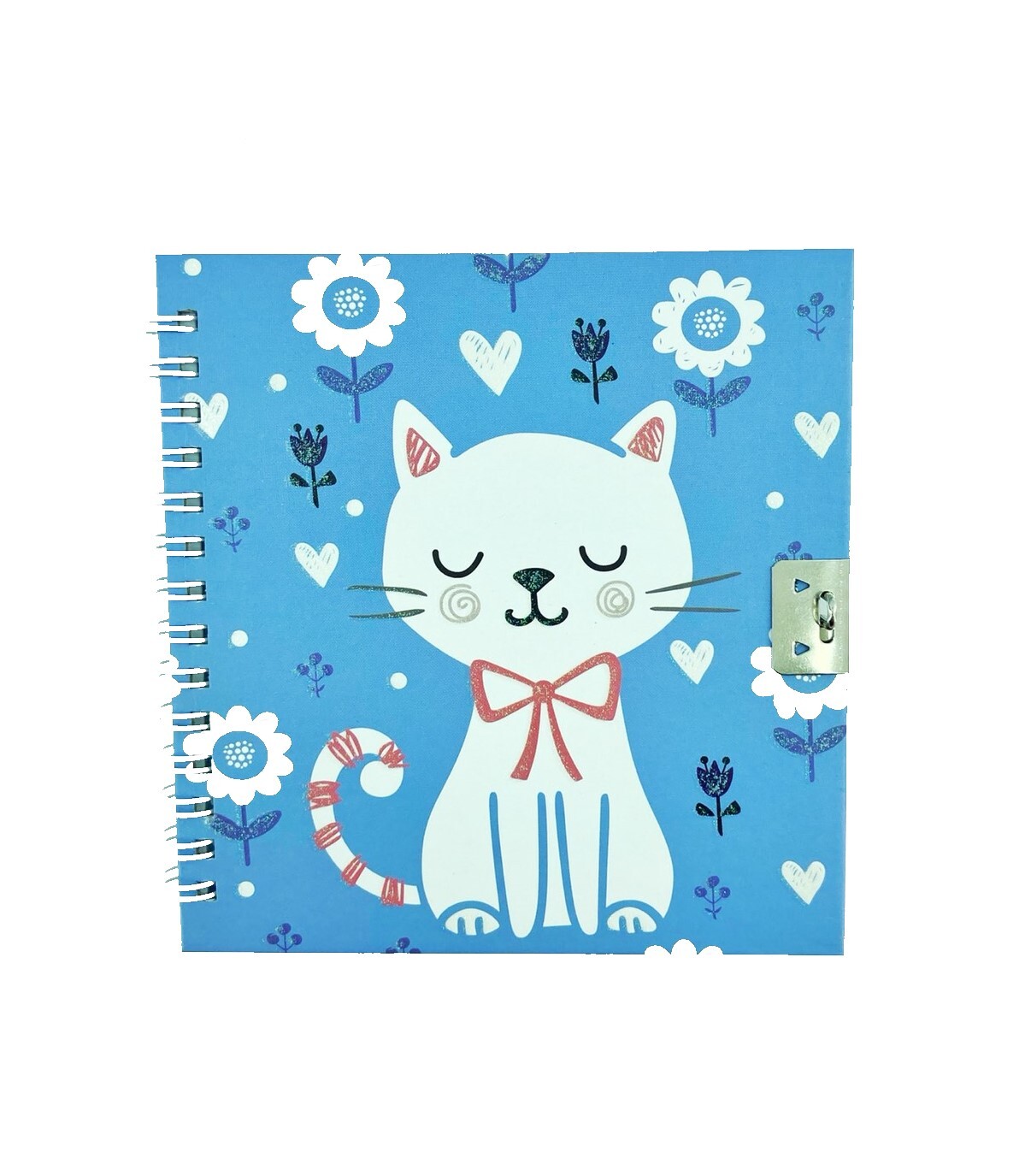 Блокнот с замком + ручка, синий / Блокнот "Коты" / Блокноты для девочек