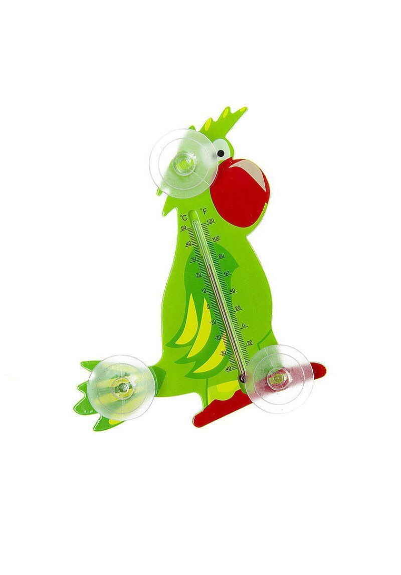 Термометр уличный, Попугай / Термометр на окно, зеленый / Градусник