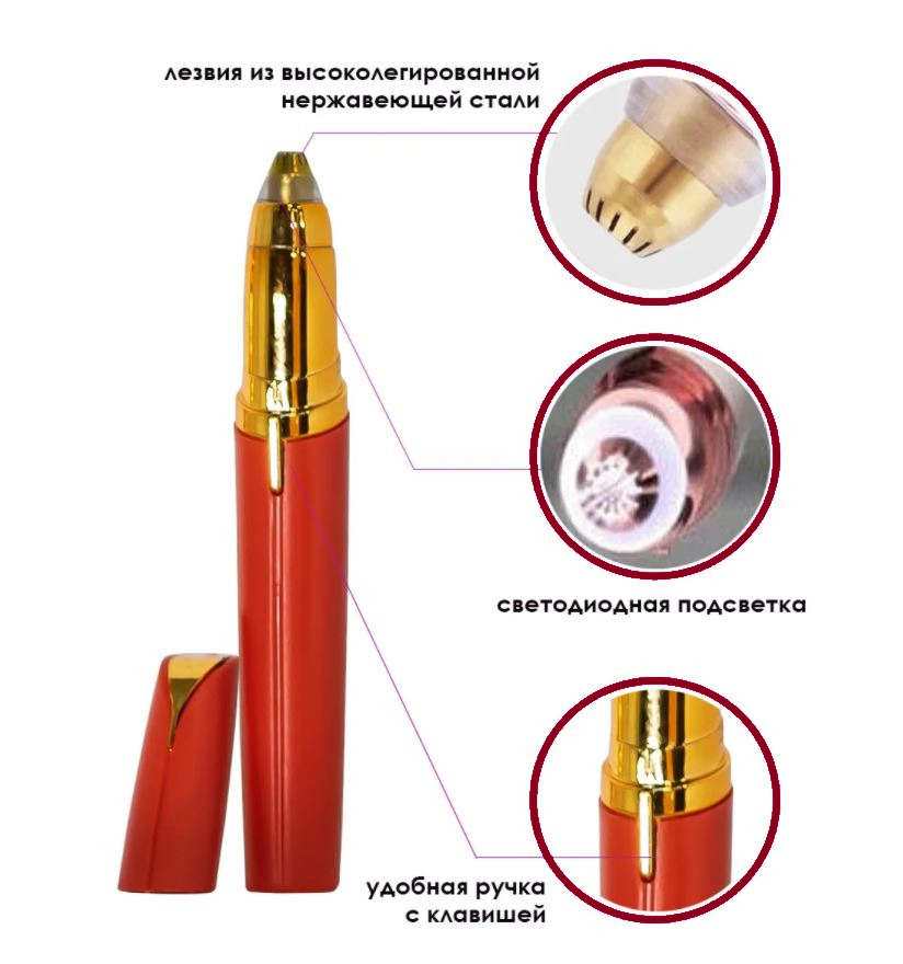 Триммер для бровей / Триммер женский, красный / Эпилятор для лица / Триммер для удаления волос