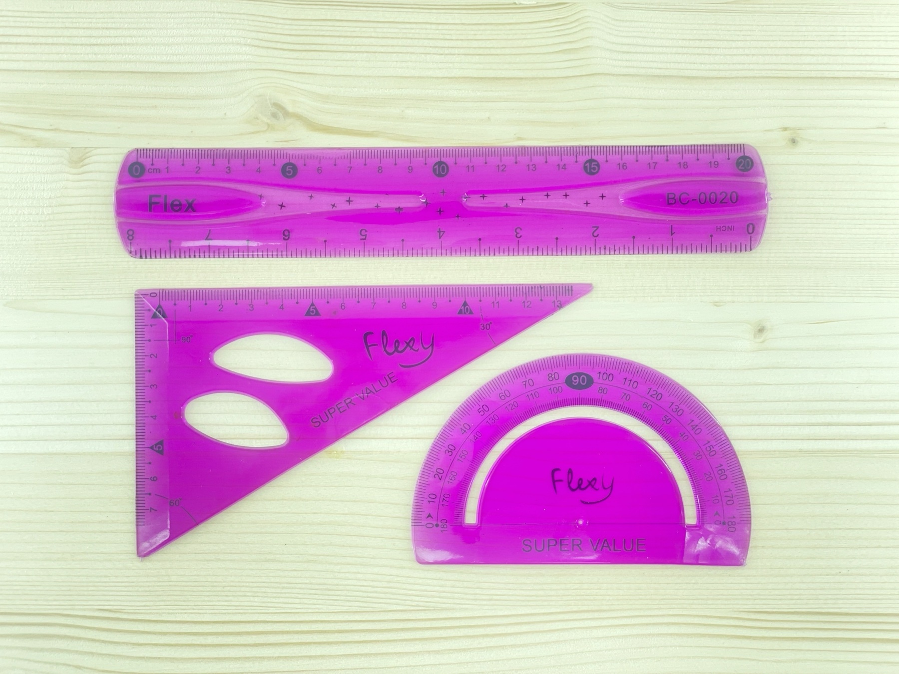 Набор чертежный, 4 предмета / Канцелярский набор / Линейка / Набор линеек гибкий , фиолетовый