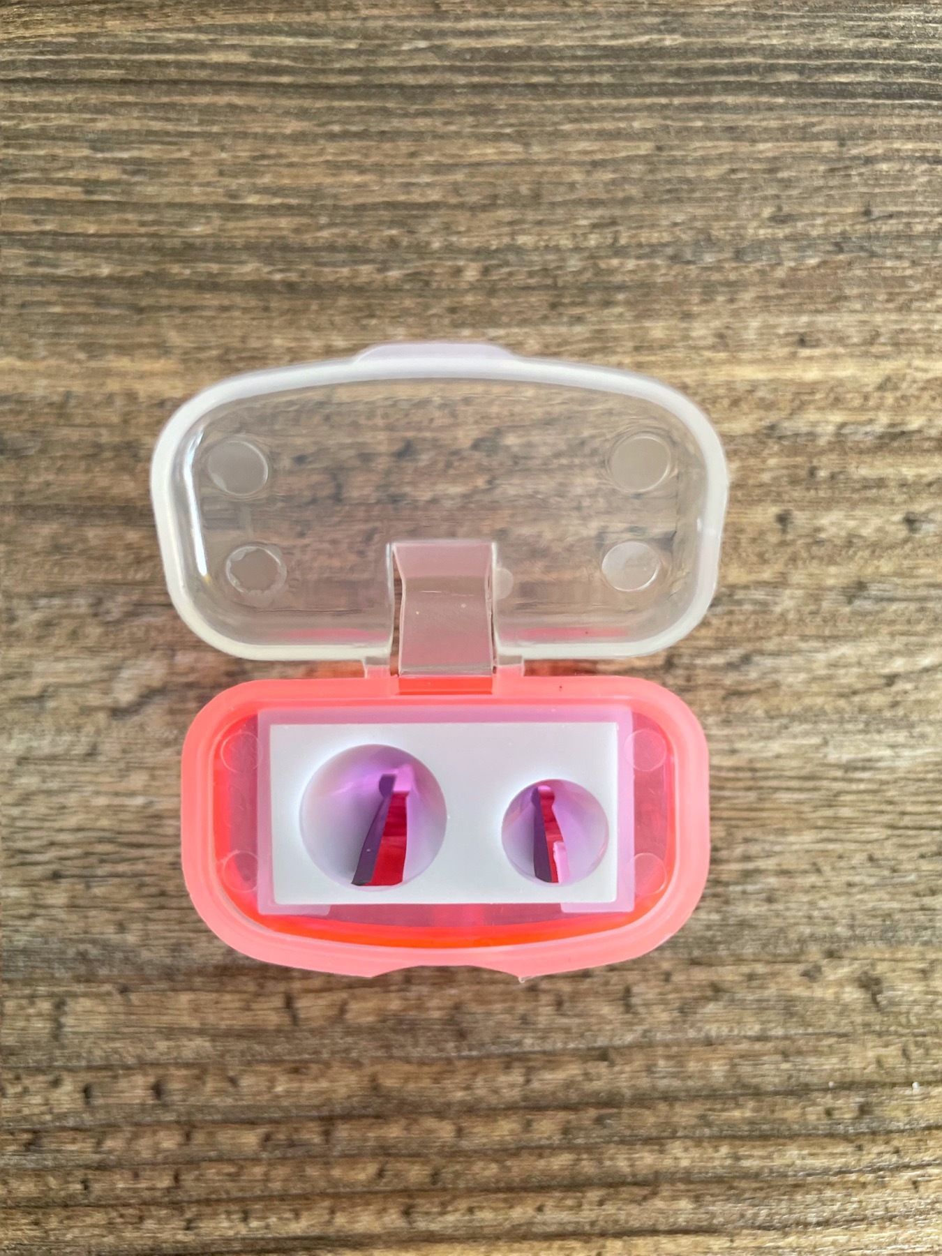 Точилка с крышкой 2 отверстия, с контейнером для стружки, розовая