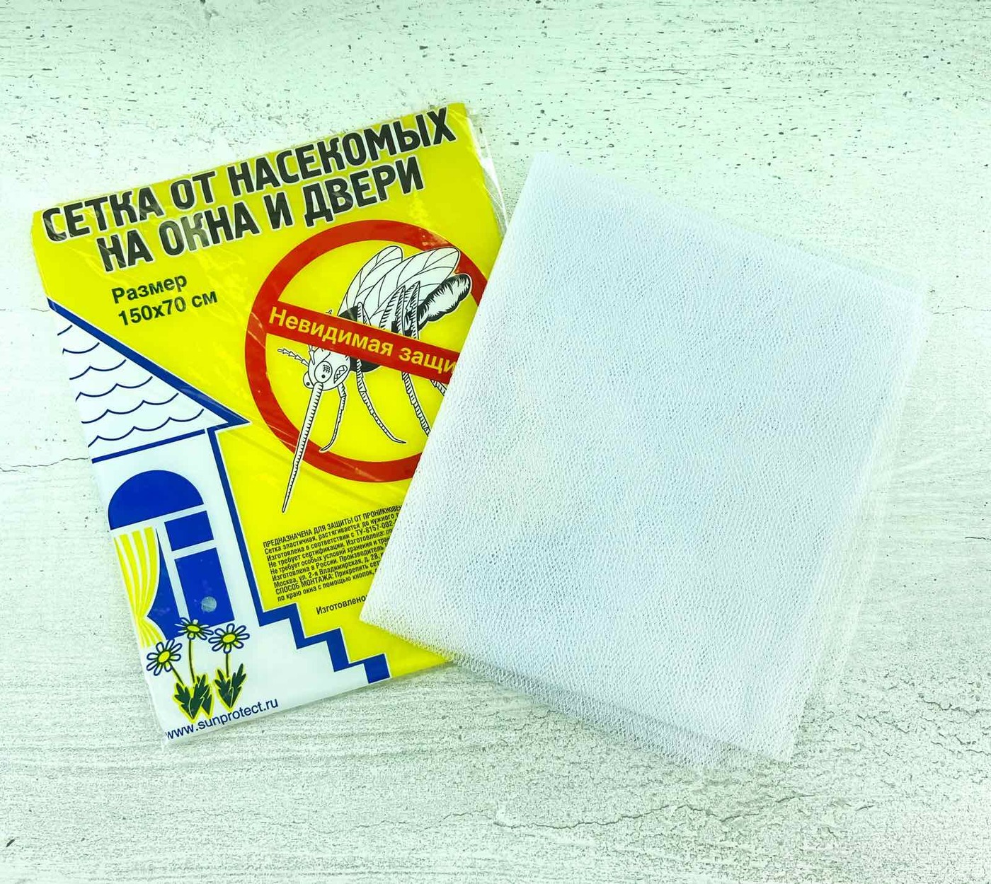 Сетка от насекомых на окна и двери 150х70 см / Москитная сетка, белая