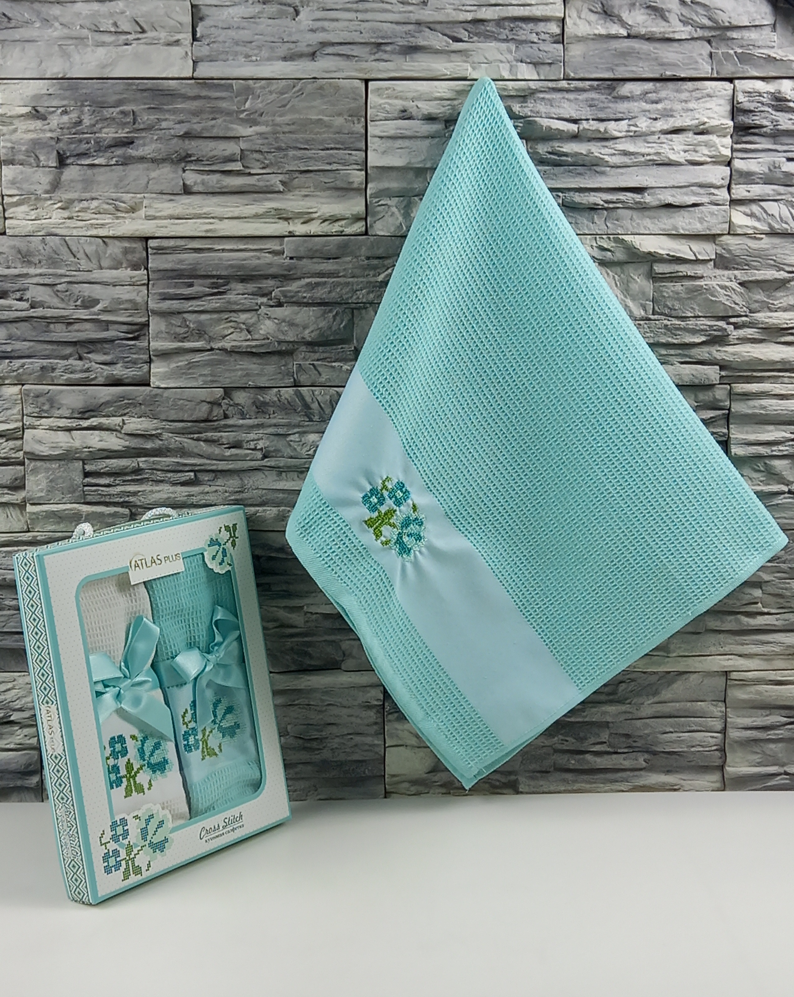 Набор кухонных полотенец ATLASPLUS 45х70 см, 2 шт./полотенца вафельные в подарочной коробке, мятный