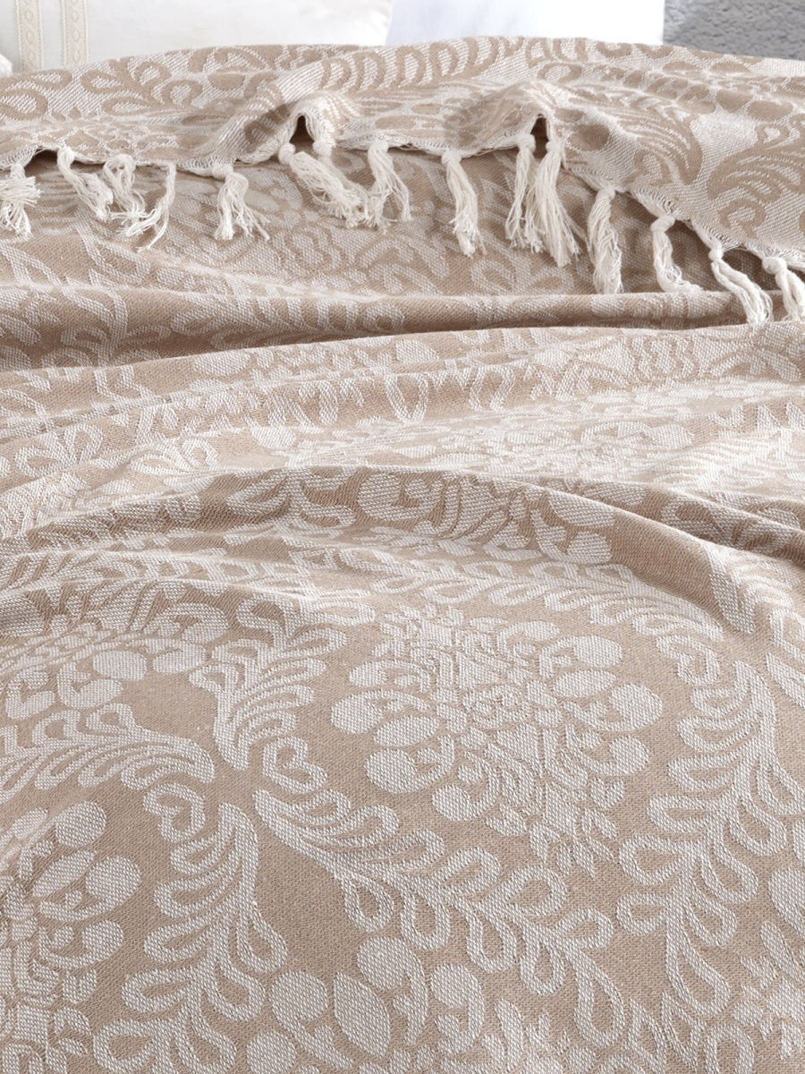 Плед-покрывало на кровать/диван ATLASPLUS 200х230 см, с кисточками, хлопок