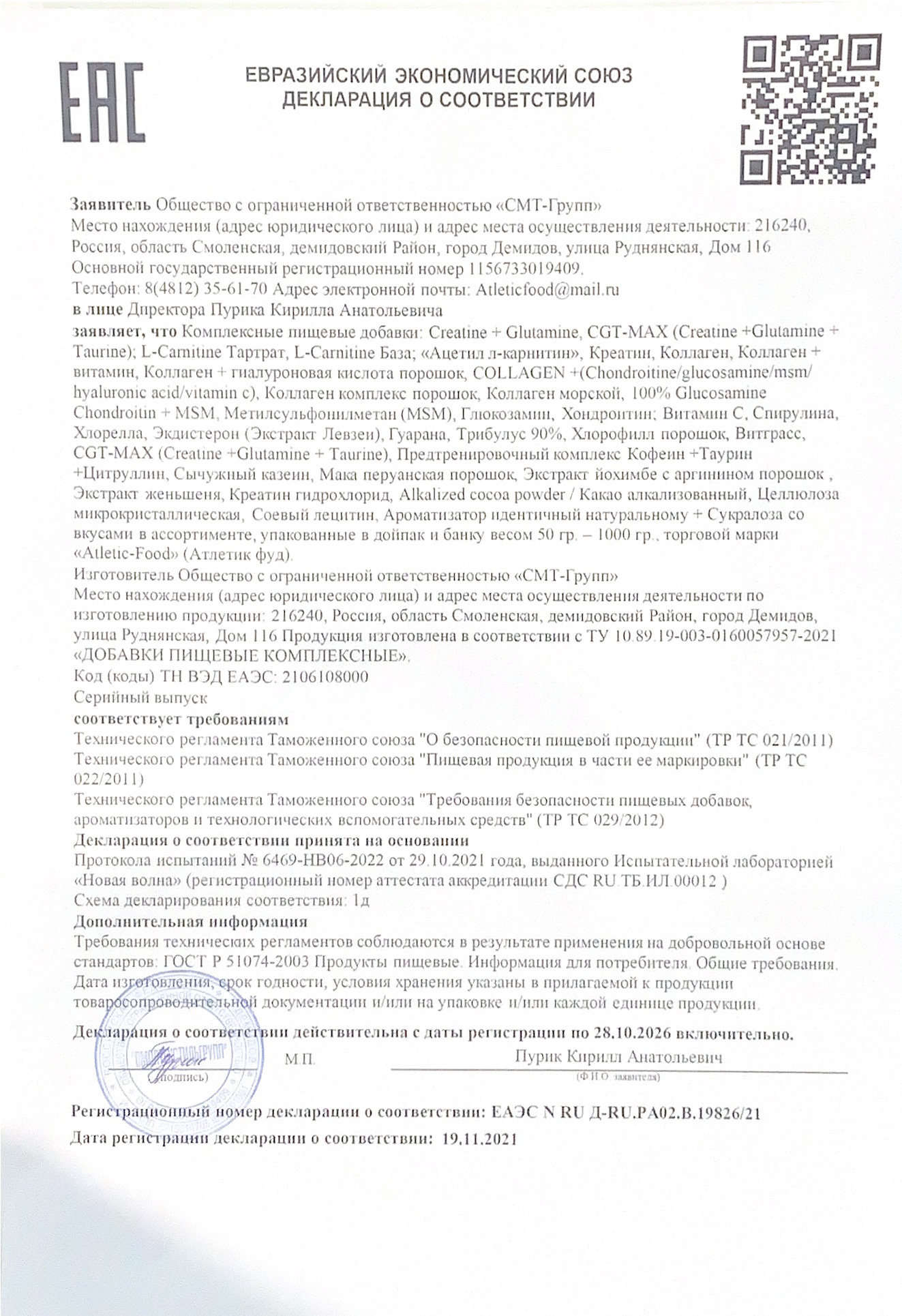 Креатин моногидрат Atletic Food 100% Micronized Creatine Monohydrate - 500 грамм, натуральный