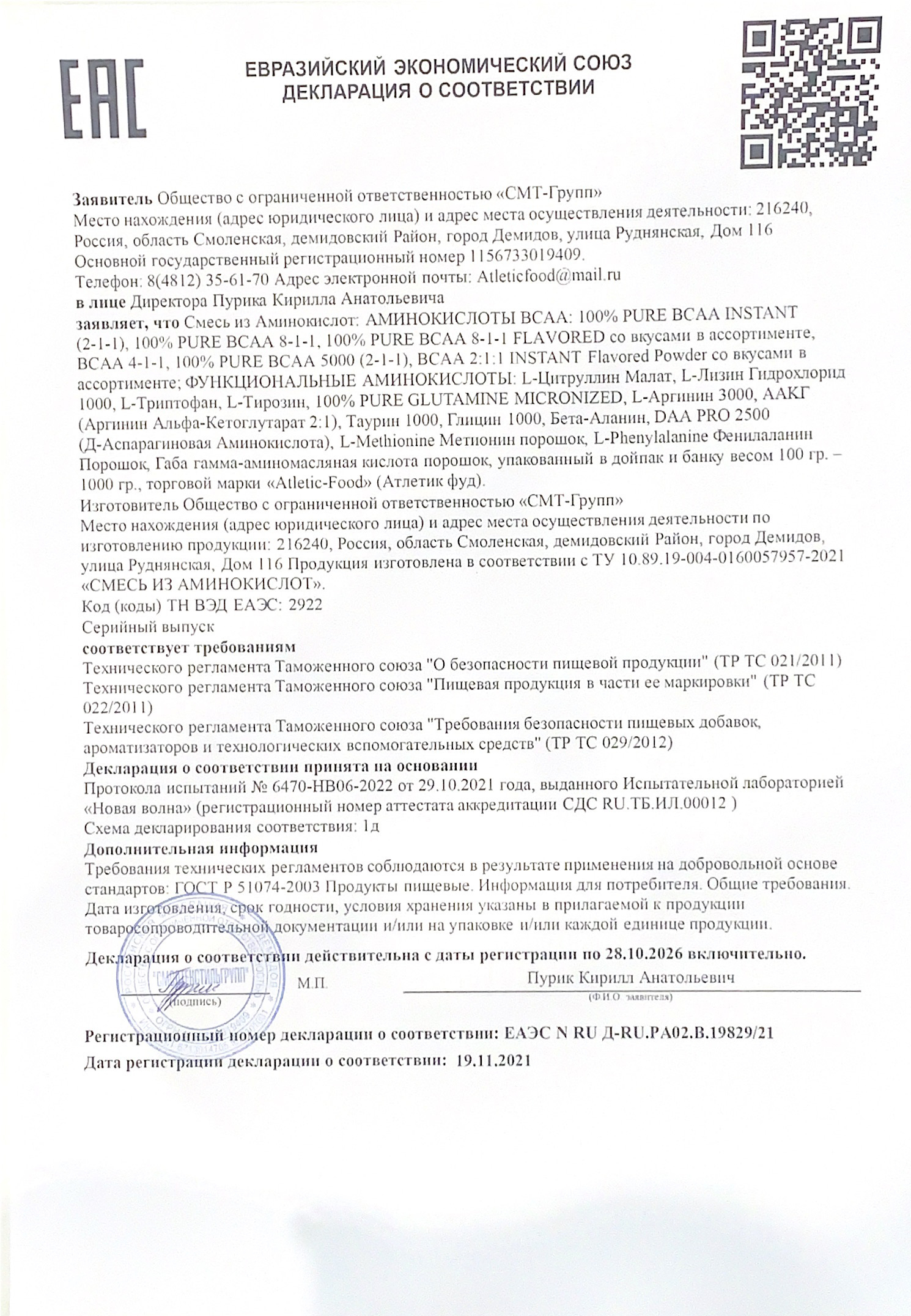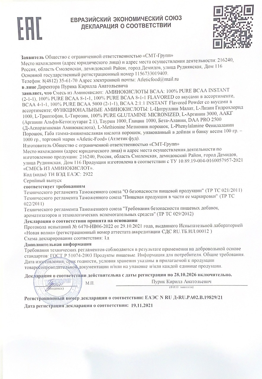 Atletic Food 100% Pure BCAA 8:1:1 - 500 грамм, натуральный (100 порций)