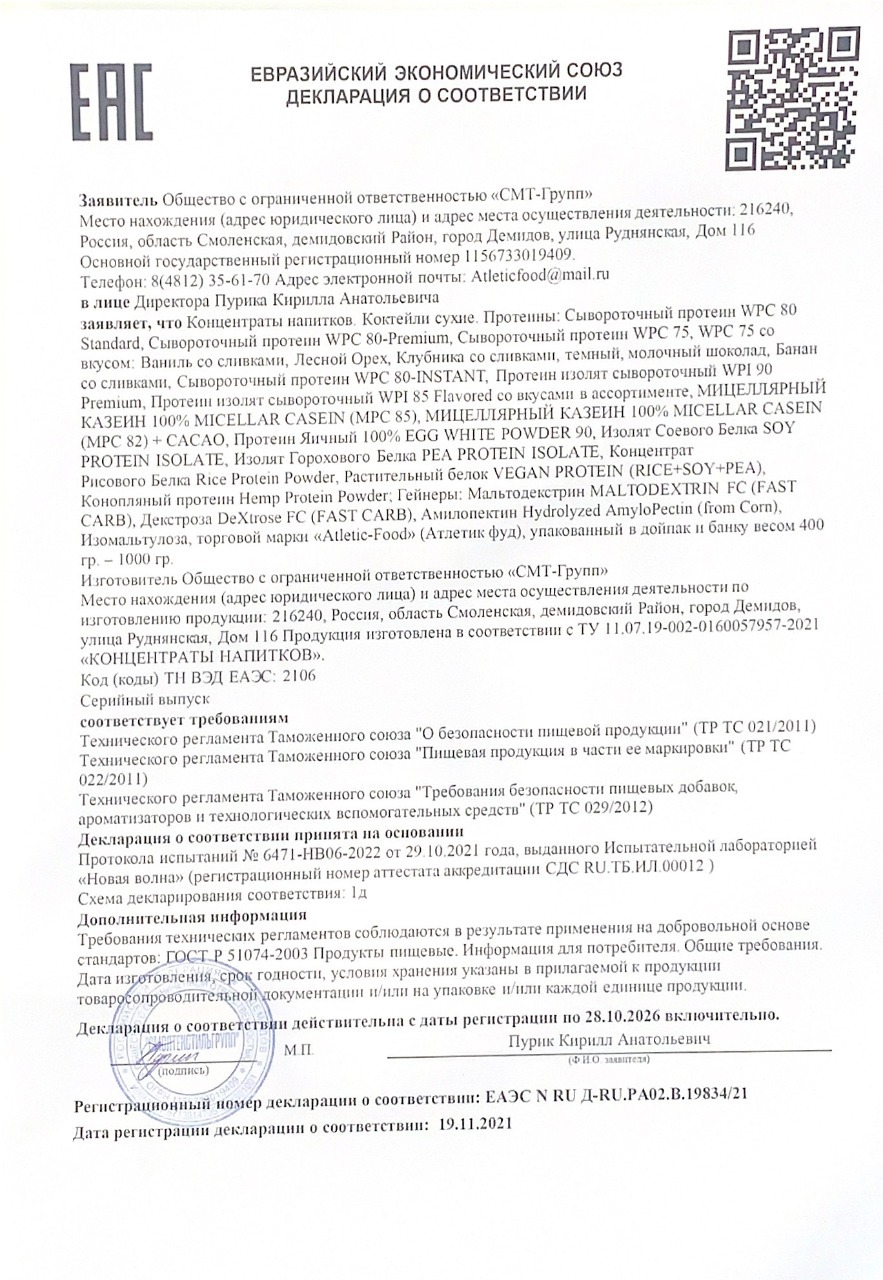 Сывороточный протеин концентрат Atletic Food WPC 80 Premium - 500 грамм, натуральный (16 порций)