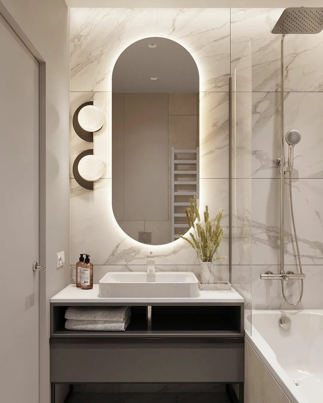 Зеркало для ванной AuraMira O100*50, подсветка 4000К, сенсор, 50 см х 100 см