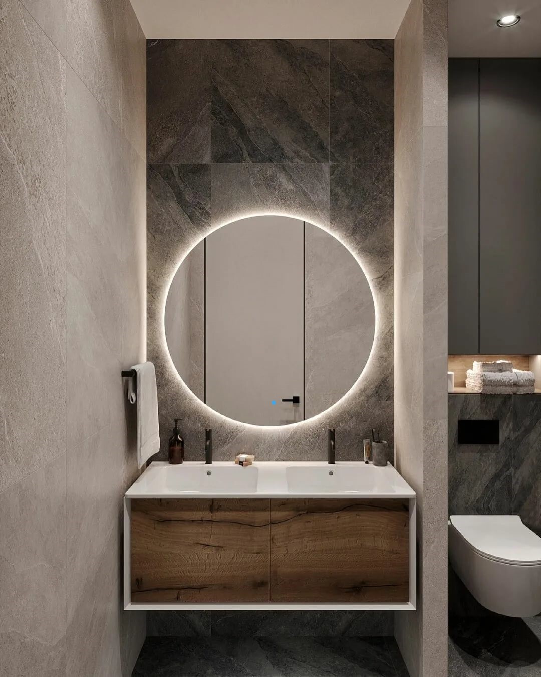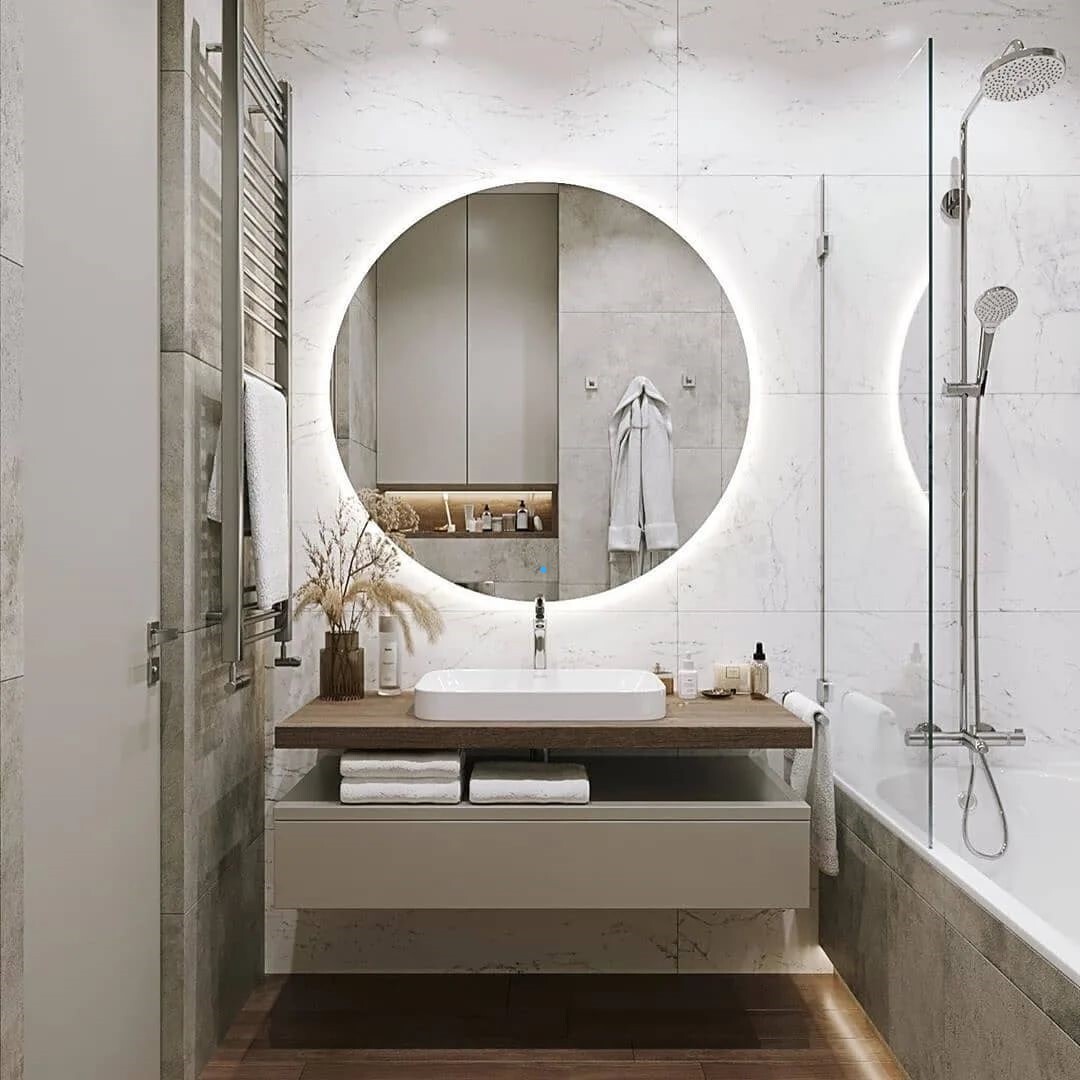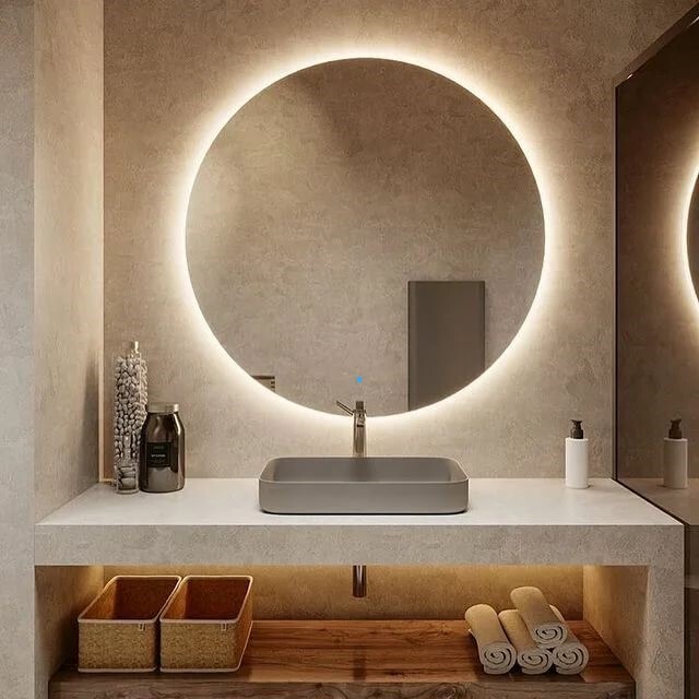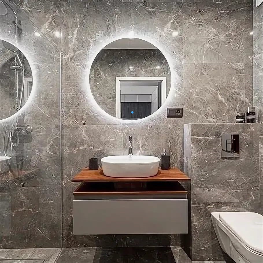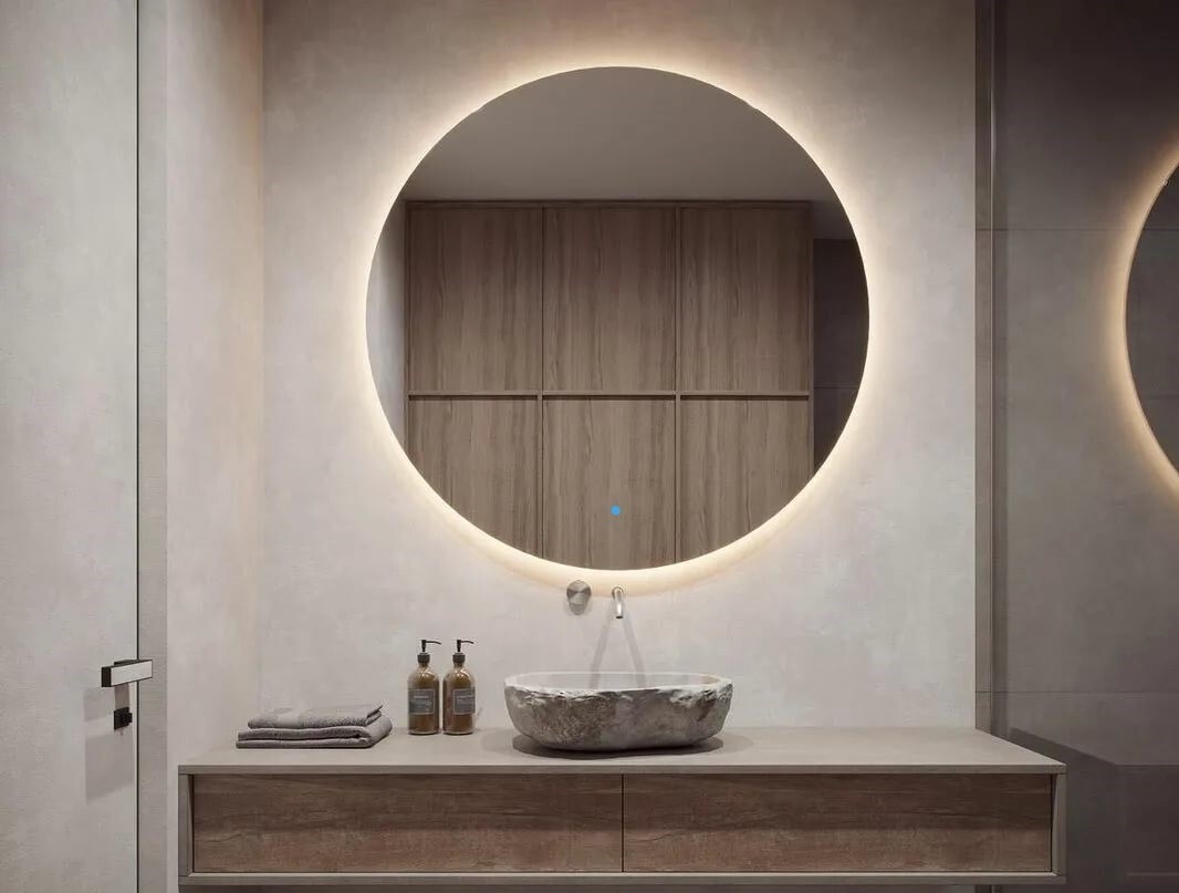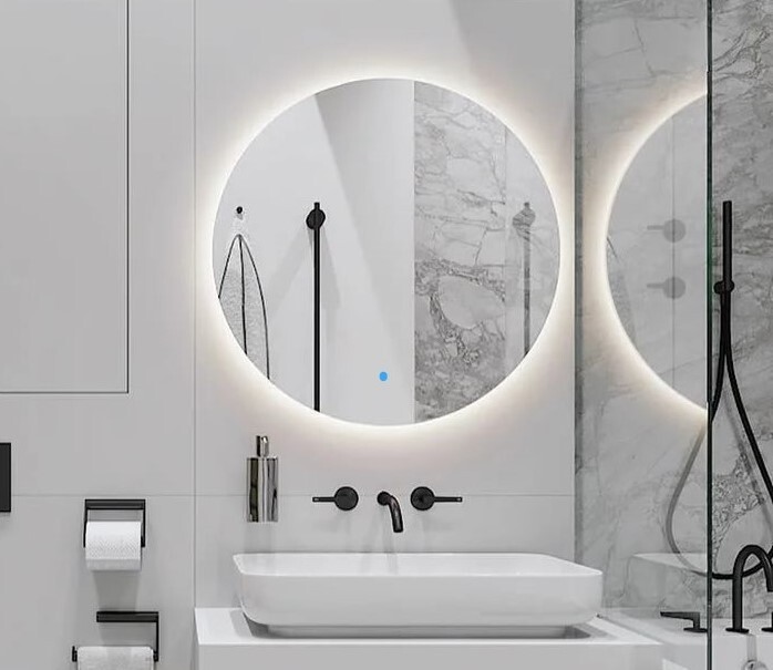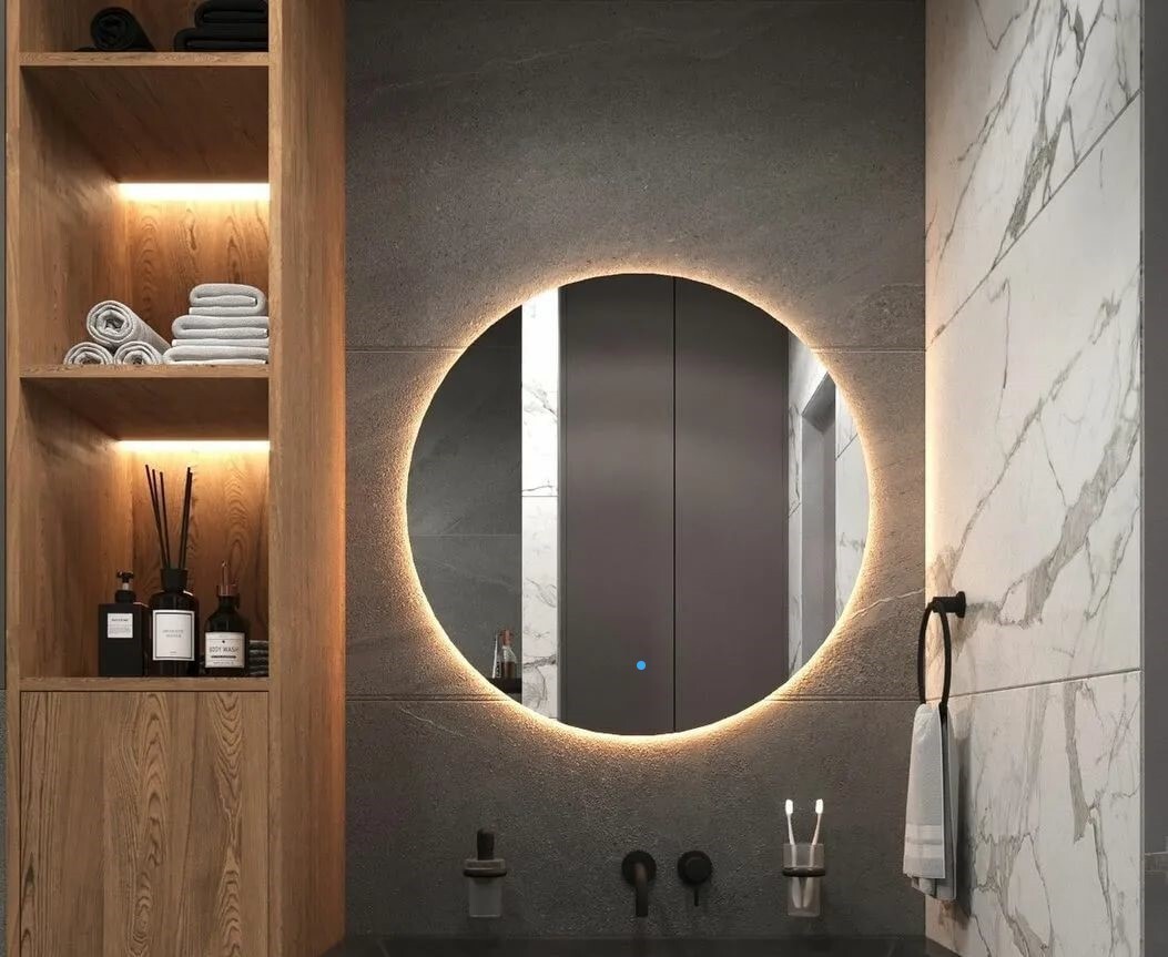 Зеркало для ванной AuraMira D80, подсветка 3000К, сенсор, 80 см х 80 см