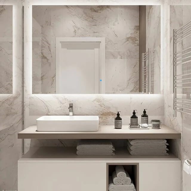 Зеркало для ванной AuraMira Q60*90, подсветка 6000К, сенсор, горизонтальное, 90 см х 60 см
